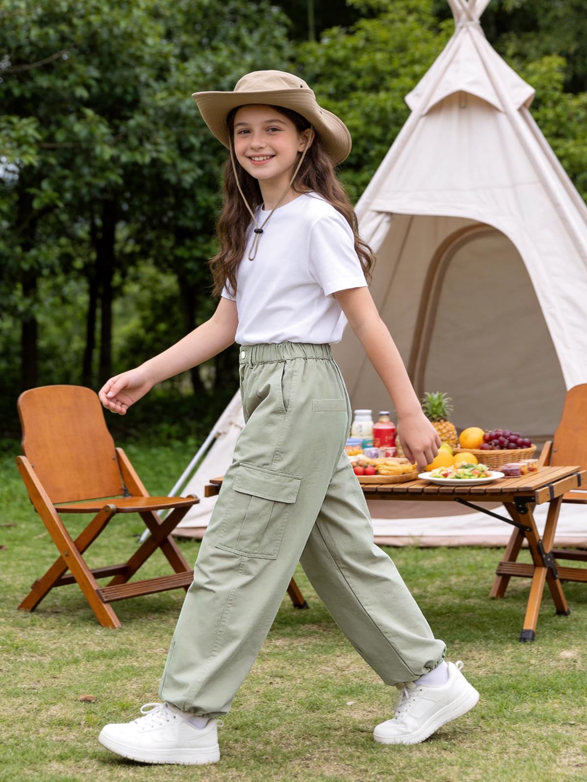 Features: Girls pants with elastic waistband for comfort. the deep side pockets, multi pockets for functionally, the strings at your ankle