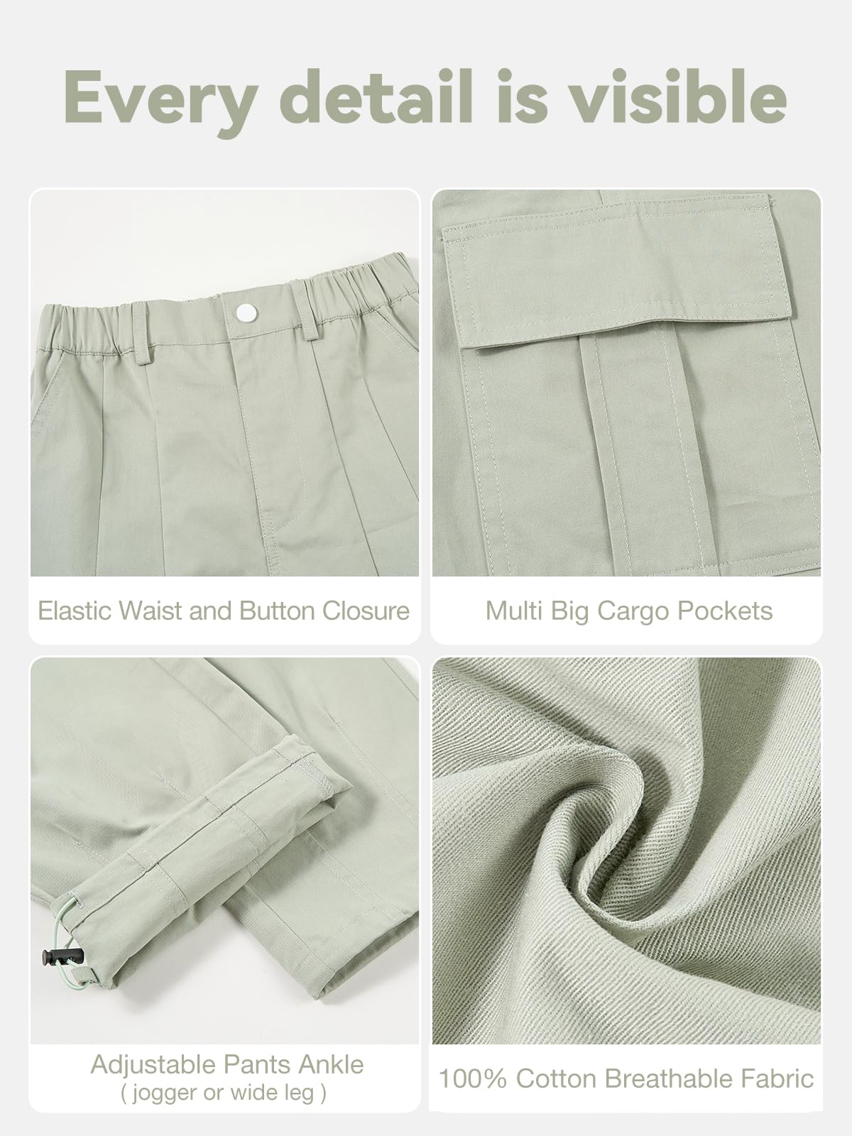 Adjustable Ankle: Adjustable at the bottom to cinch it also helped with length, to make it more fitted. kids cargo pants girls can be able to wear them both ways, with trendy wide leg bottom look and if you tighten the bottom it doesn’t look the same for tapered leg pants.