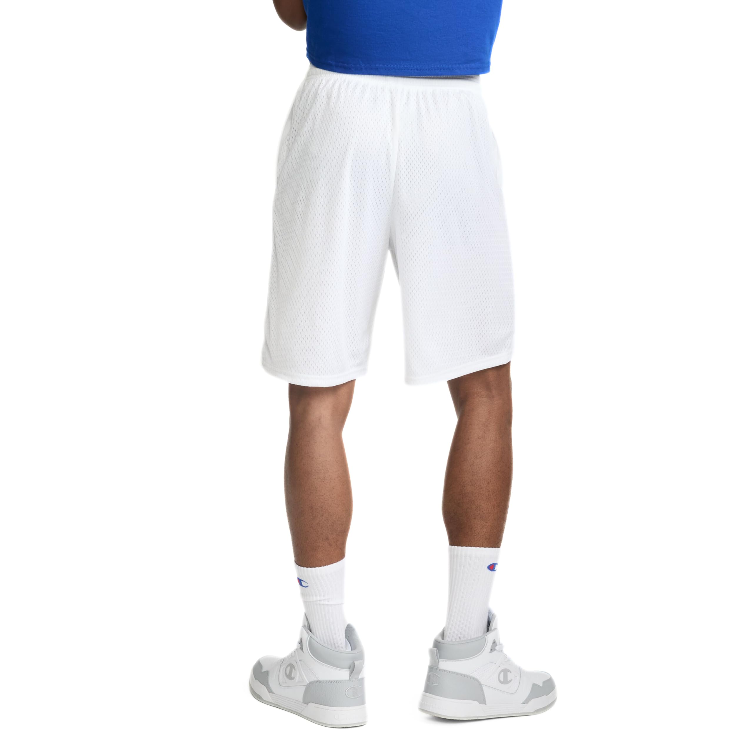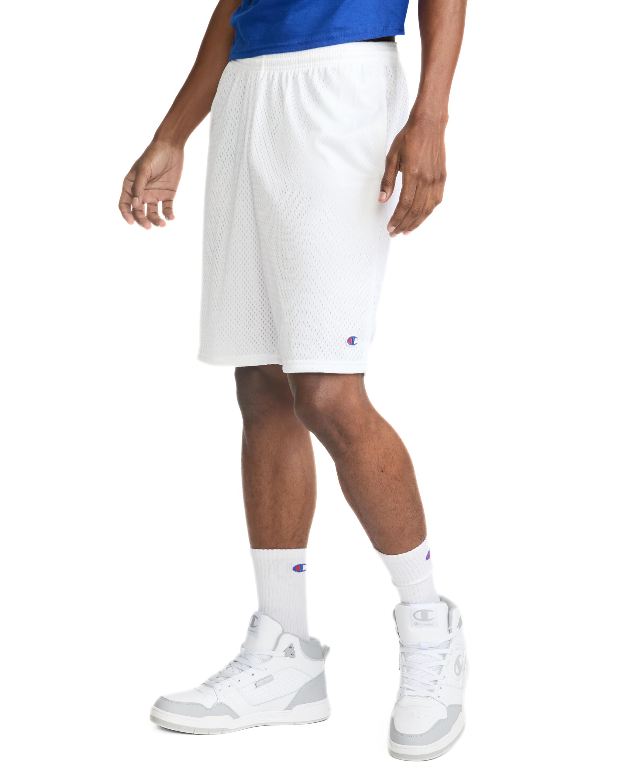 Description For the light, airy comfort you crave for sports, training, or relaxing, look to Champion®'s long mesh basketball shorts from the company that invented the mesh athletic short. The silhouette is classic, with airy mesh and a smooth tricot lining that feels amazing against your skin. Designed for comfort and convenience, these light, breathable mesh gym shorts have an elasticized waistband with an inside drawstring to adjust for a perfect fit. The loose legs with side vents at the hem are designed for ease of movement, with convenient side pockets for essentials. The longer length with a 9" inseam hits just at the knee. Go with the original mesh basketball shorts from Champion®.