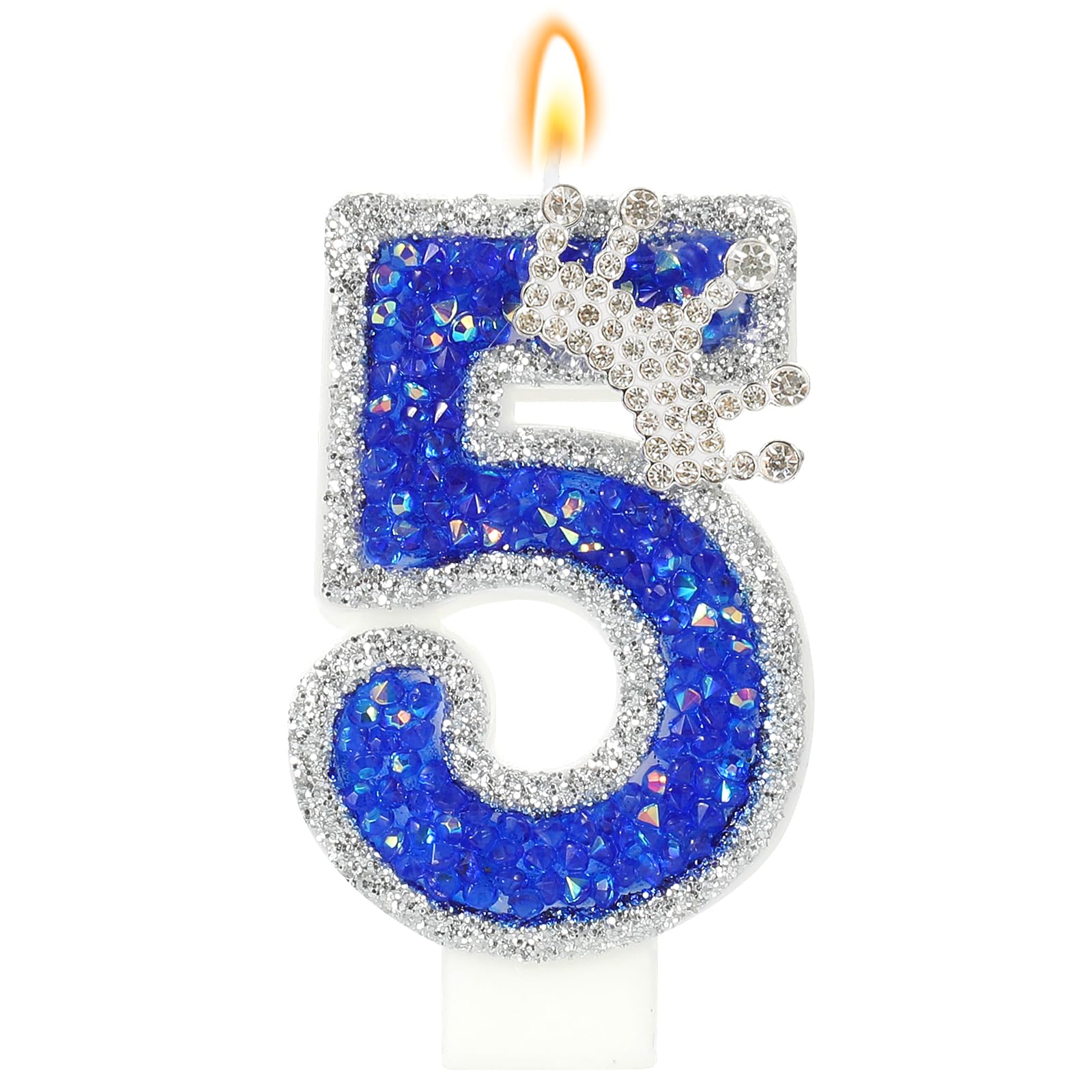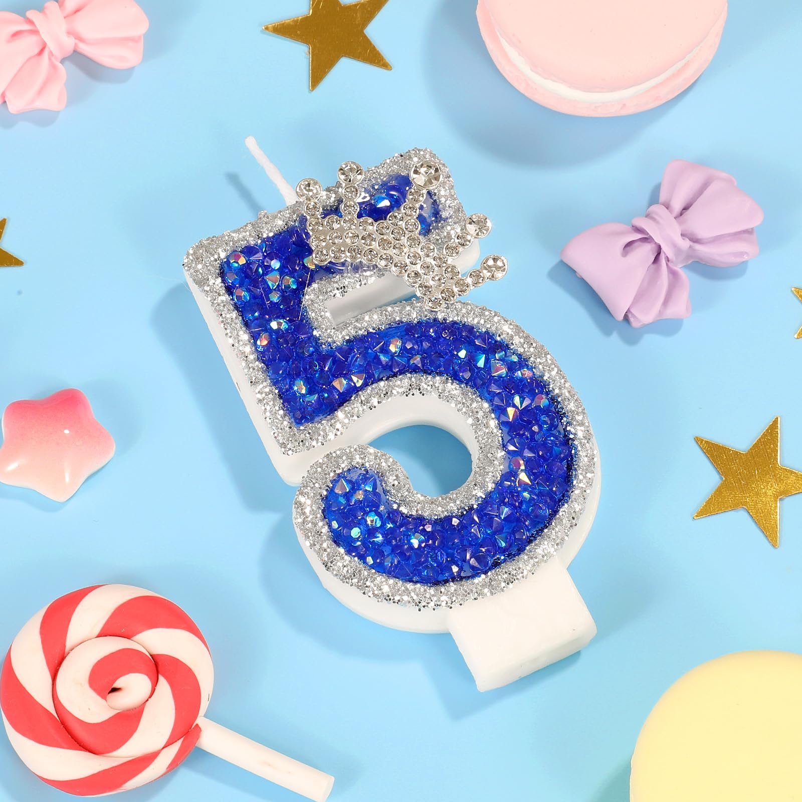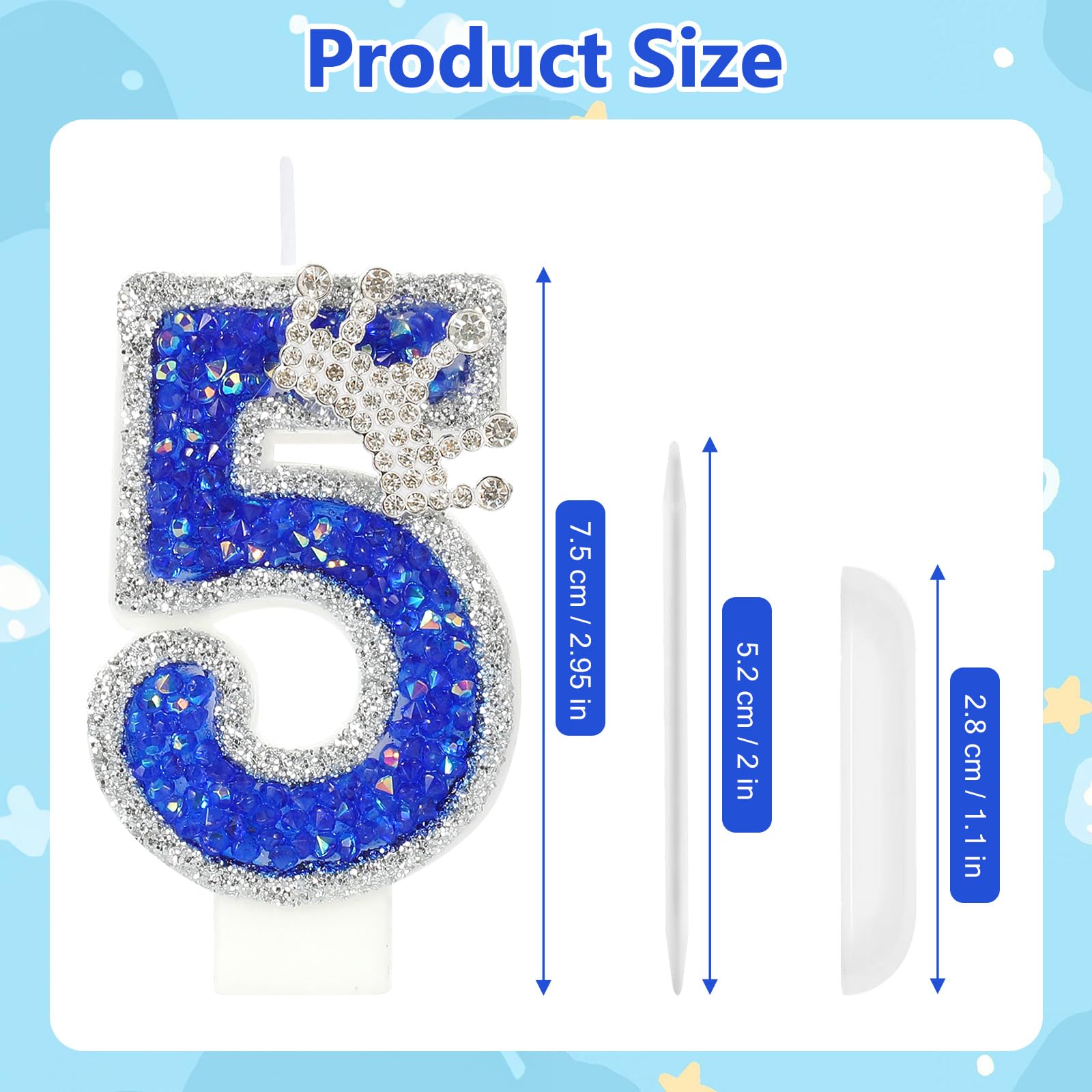 【Pretty Appearance】This blue number candle is inlaid with sparkling sequins and delicate crown ornaments, beautifully made, make your cake more beautiful.