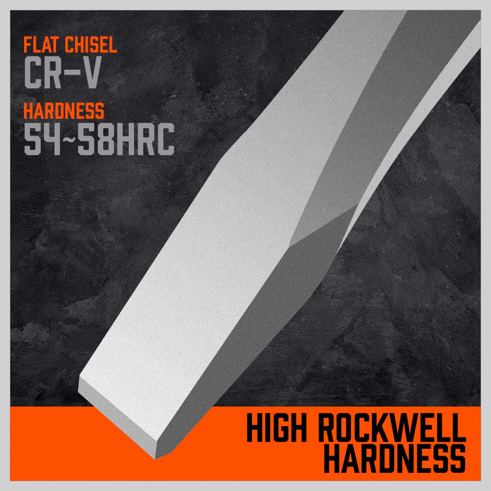 Heat treated chromium vanadium provides a high hardness rating that prevents rapid expansion of the head and passivation of the chisel and punch.