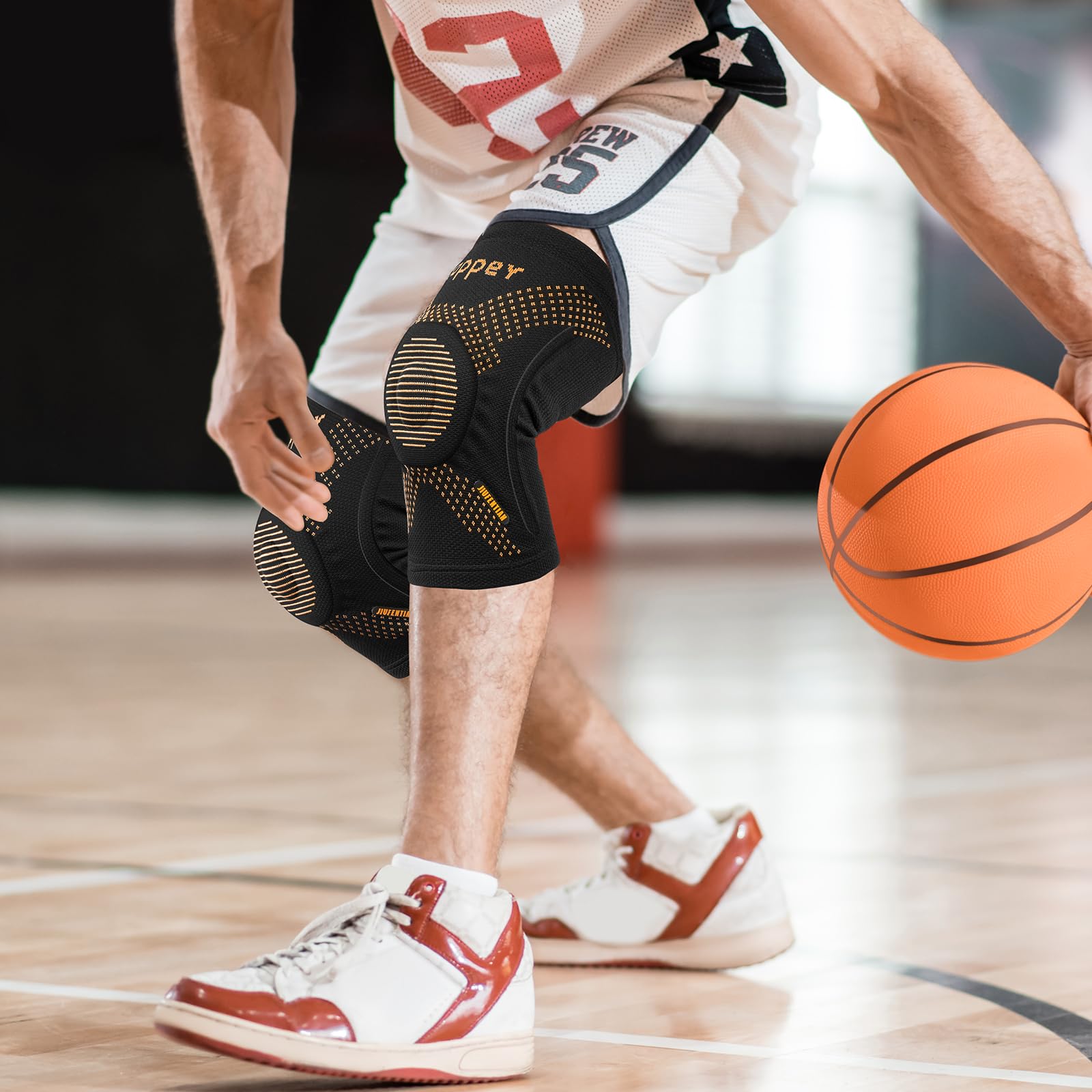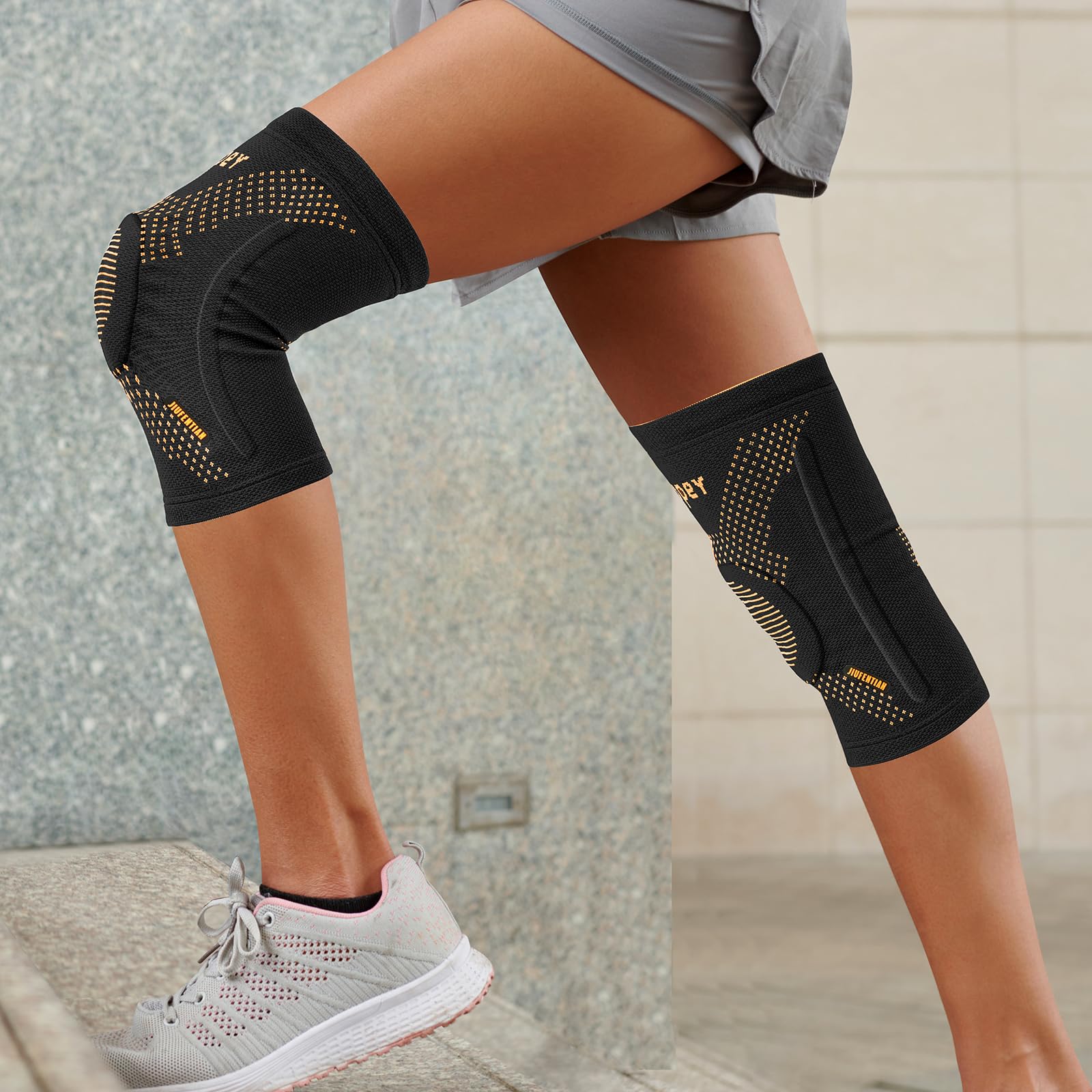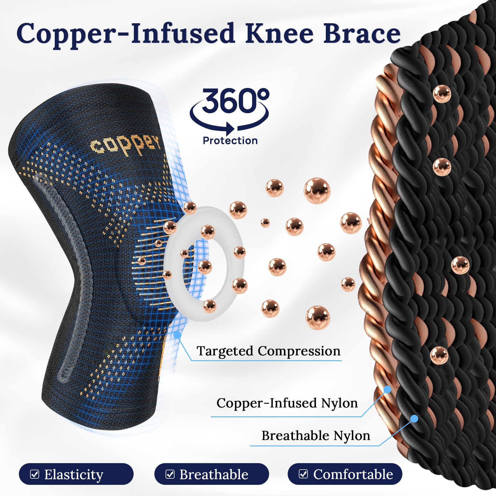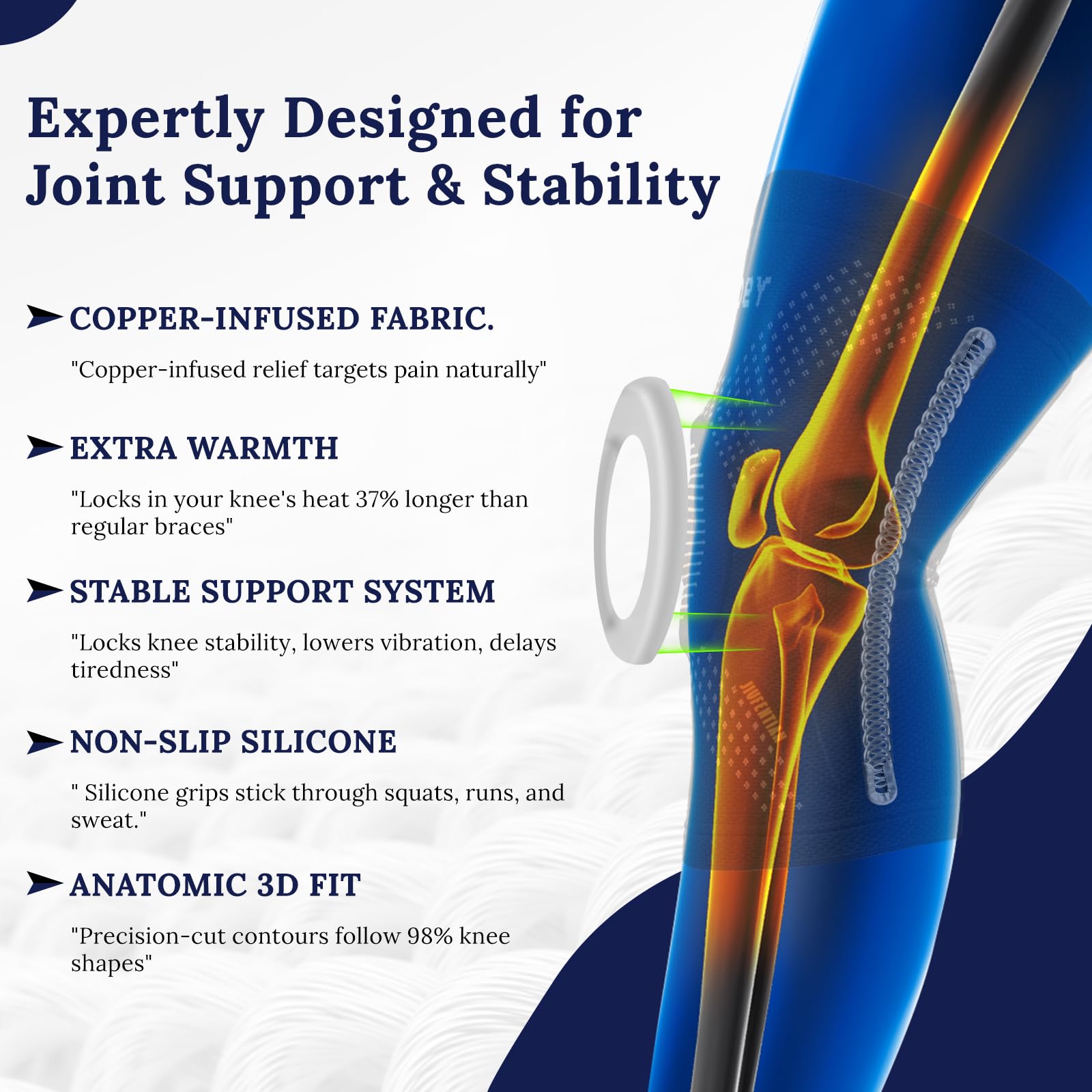 [Targeted Knee Support] Engineered with a Patella Gel Pad to stabilize the kneecap and reinforced spring stays to prevent sideways strain, this copper-infused knee brace delivers focused support that helps alleviate discomfort from conditions like runner's knee, chondromalacia, or previous sprains. It adapts to dynamic movements, making it ideal for stopping, pivoting, and jumping during soccer, badminton, or squats.