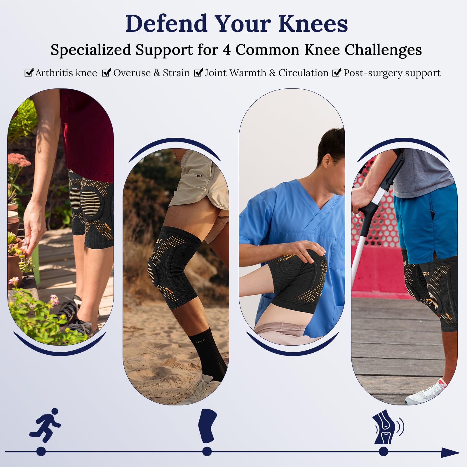 [Swelling Relief & Recovery] The dynamic compression of this knee sleeve enhances proprioception for quicker muscle response and joint stability. Its graduated pressure also supports circulation, acting like a gentle pump to reduce fluid buildup and swelling after exercise or minor strains—speeding recovery and reducing soreness.