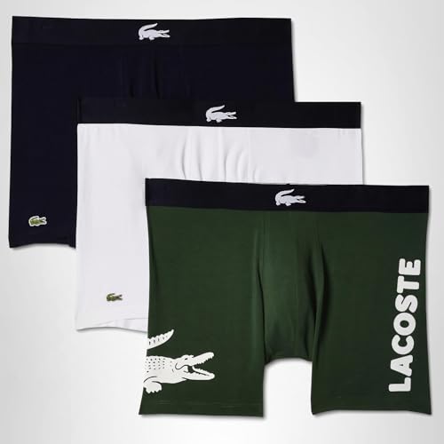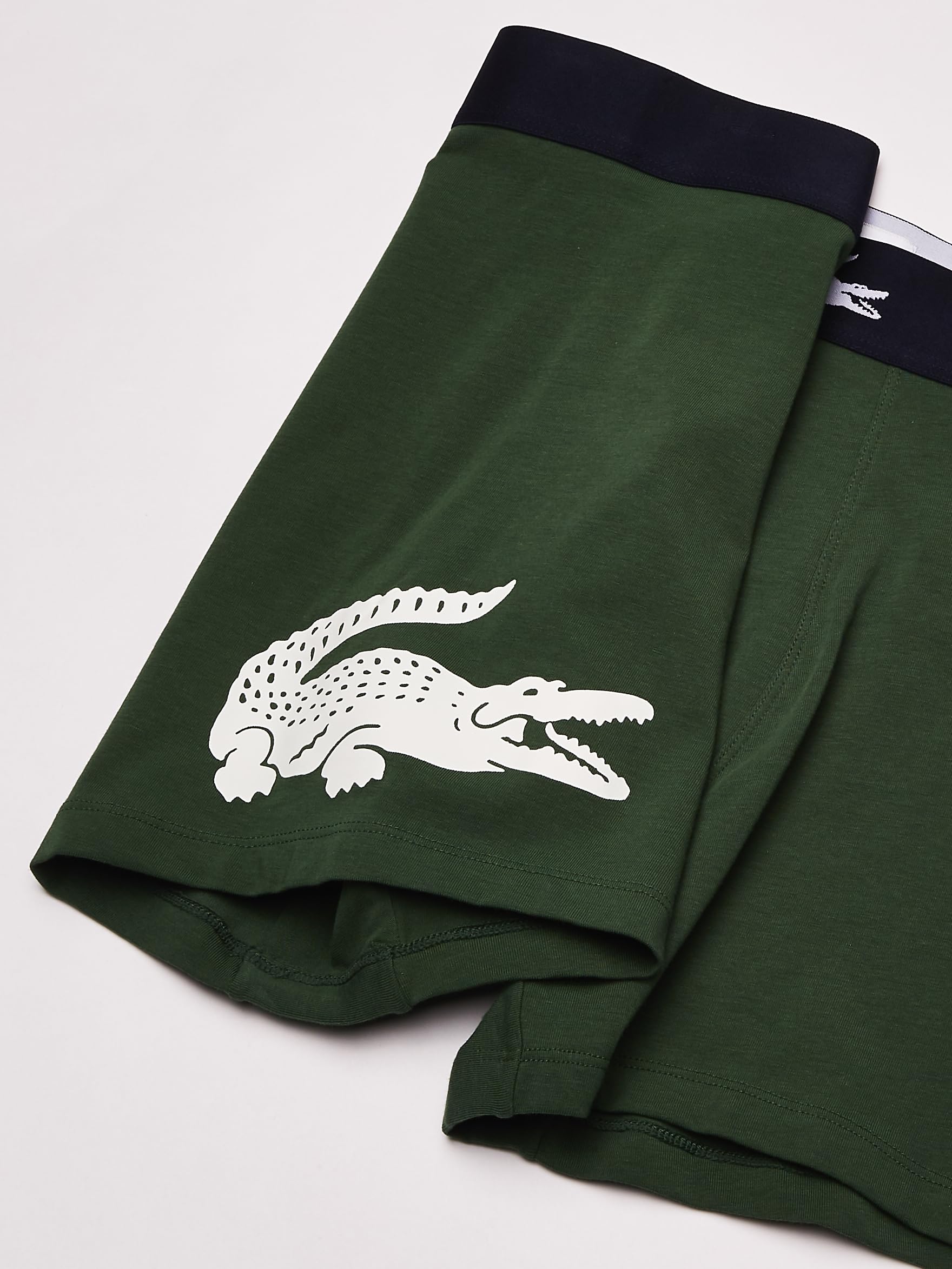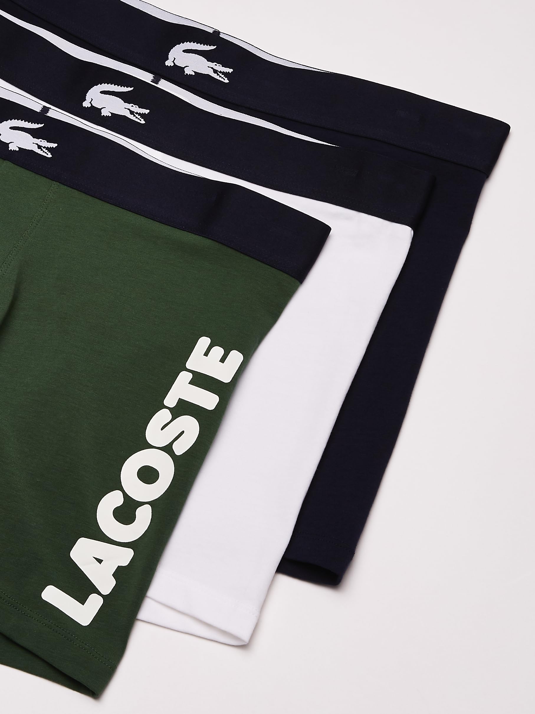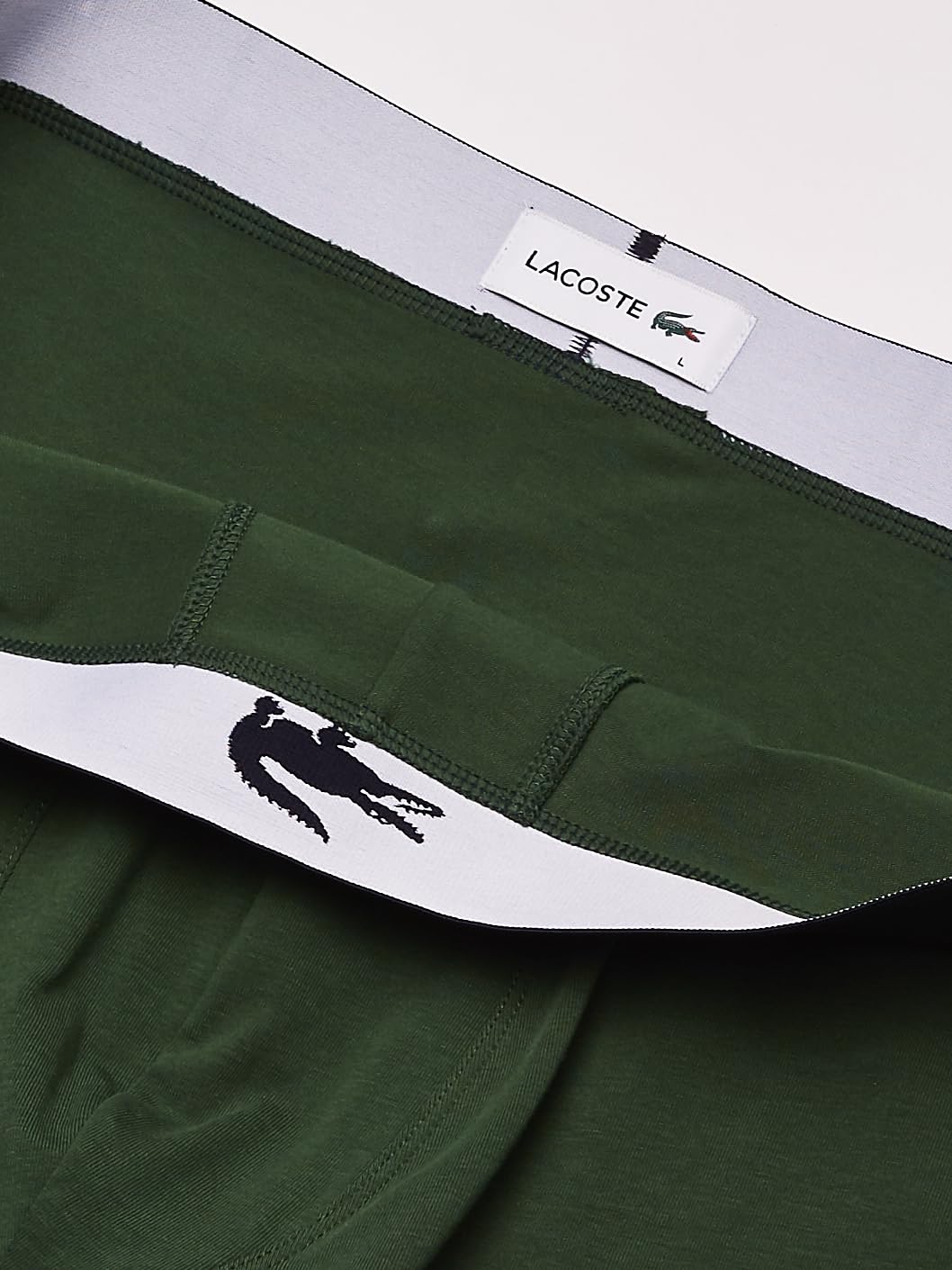 Description Put comfort first in these stretch cotton jersey boxer briefs. One printed pair, two plain pairs, all with contrast jacquard waistbands. A Lacoste menswear essential.