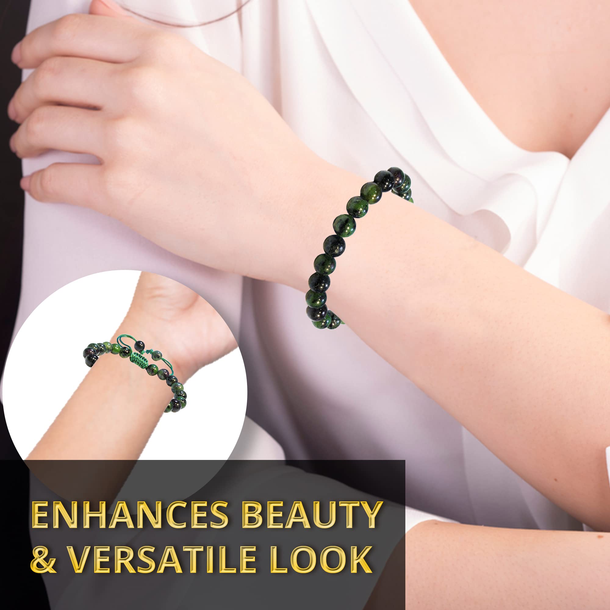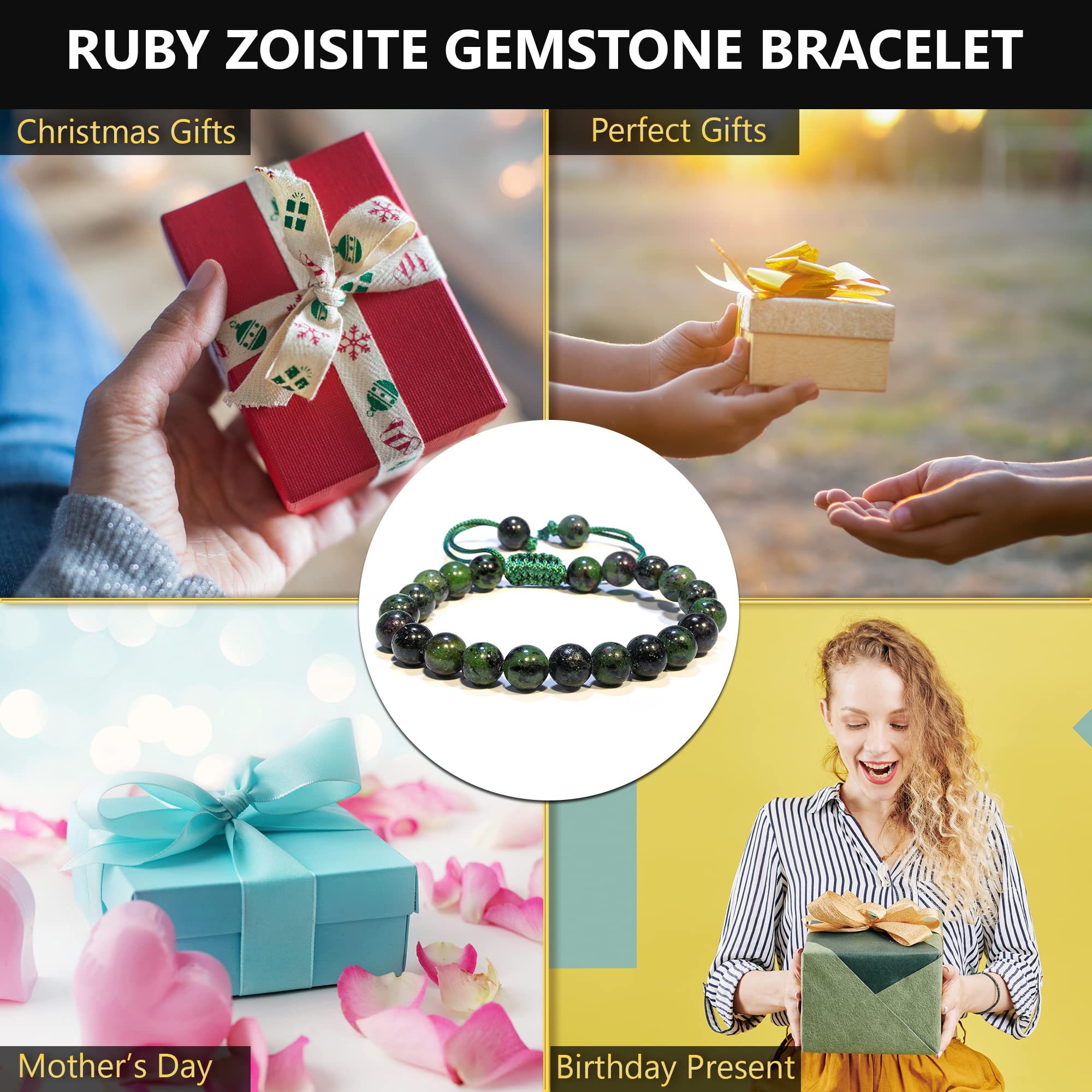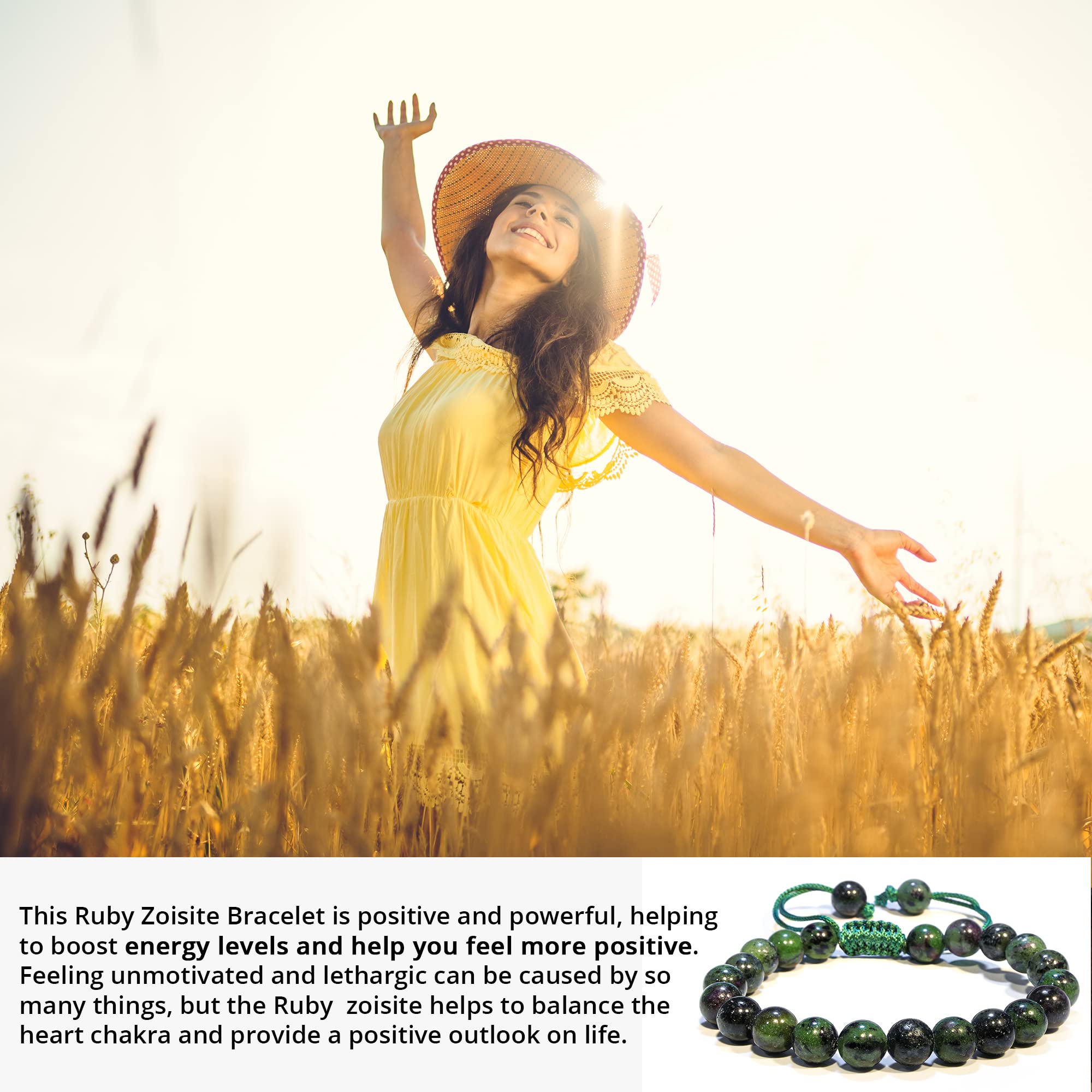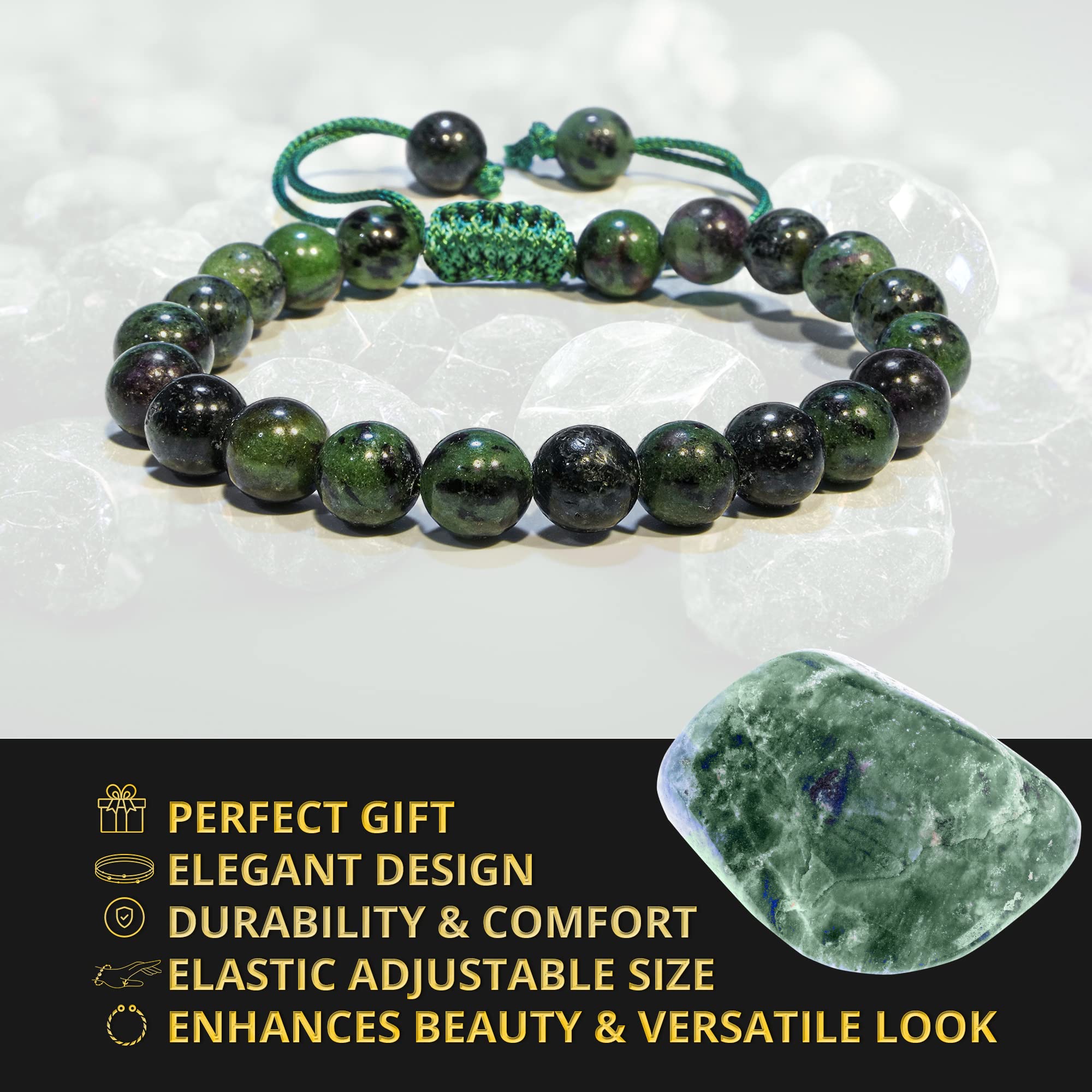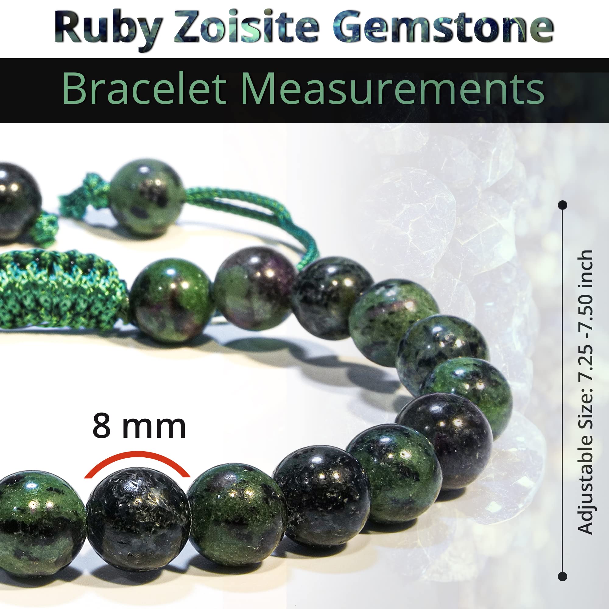 Made with Love: Our Ruby Zoisite healing bracelets for women and men are made with high-quality, carefully selected real gemstones, smoothly rounded to perfect 8mm beads and an elastic string with macrame closure for comfortable and long-lasting wear.