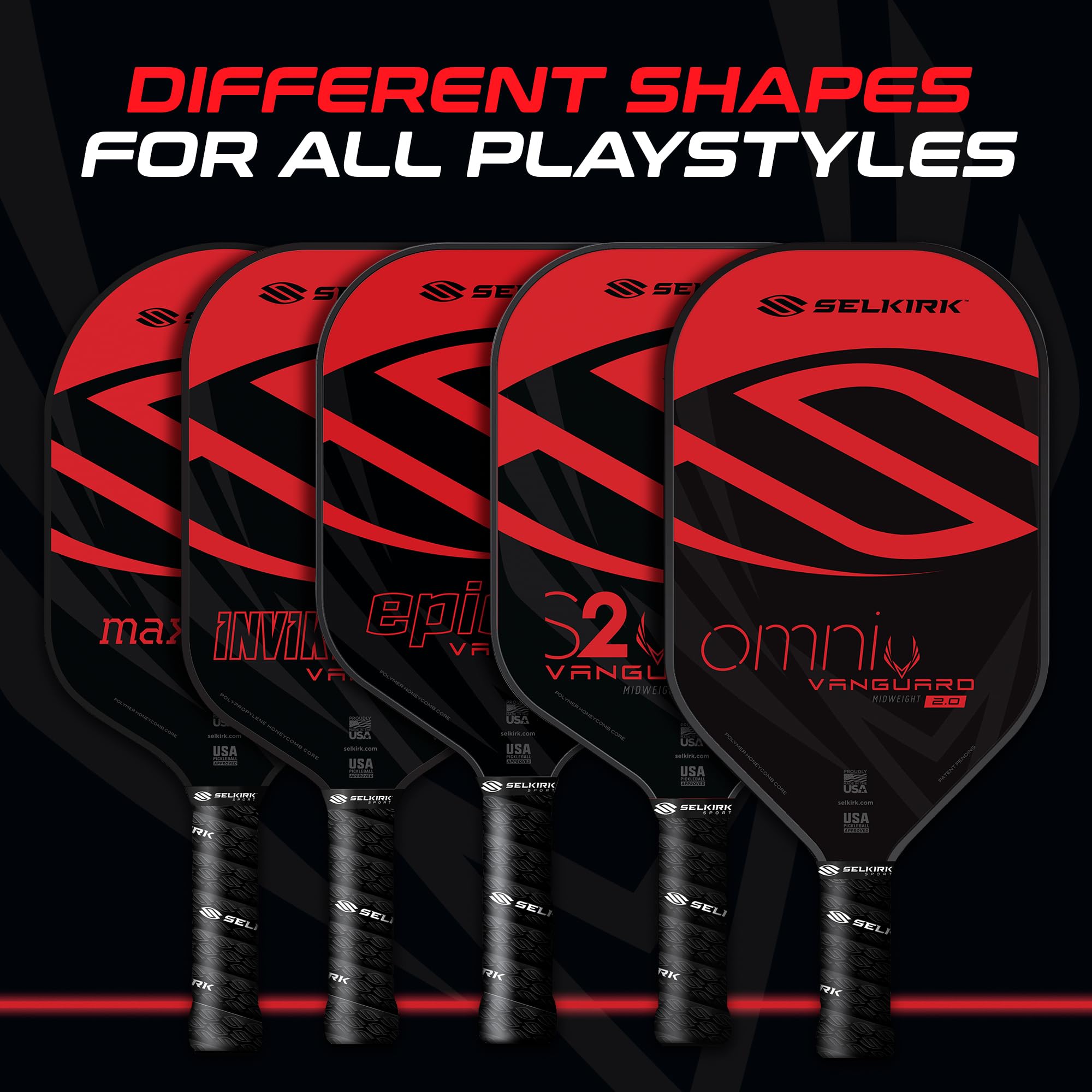 OMNI: This paddle has an elongated shape with a short handle. The shorter handle allows the Omni to have a bigger surface area, and thus a larger sweet spot than traditional elongated paddles that are skinnier. If you need the reach of an elongated paddle without sacrificing consistency and a nice sweet spot, the Omni shape is ideal for you.