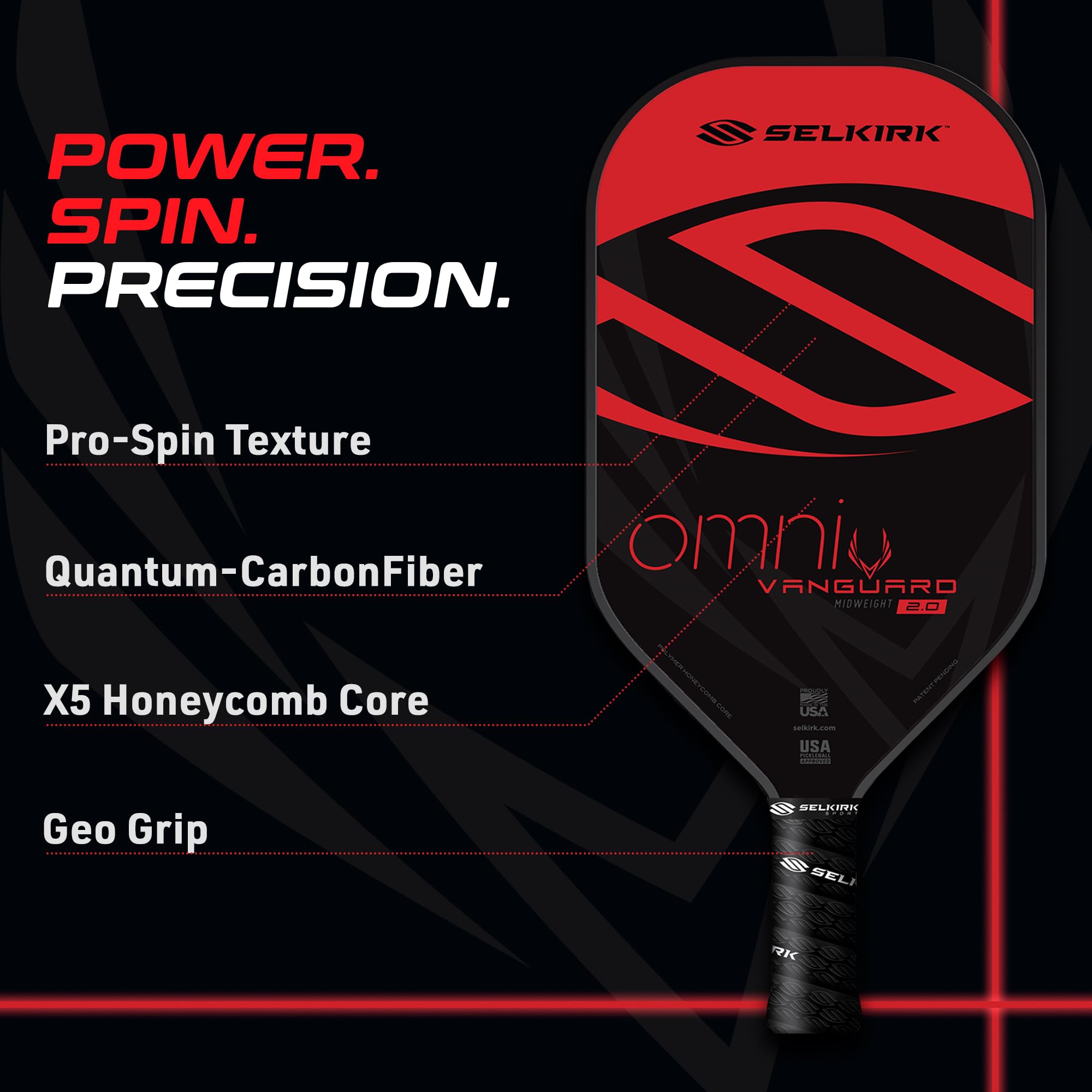 The Selkirk Sport Vanguard Hybrid line is engineered for players seeking consistent performance, reliable feel, and premium craftsmanship. Featuring a QuadCarbon face and X5 Honeycomb core, Vanguard carbon pickleball paddles deliver a smooth, controlled response with enhanced dwell time and a generous sweet spot. Designed for all skill levels, every Vanguard model offers trusted stability, precision, and the quality expected from Selkirk paddles.