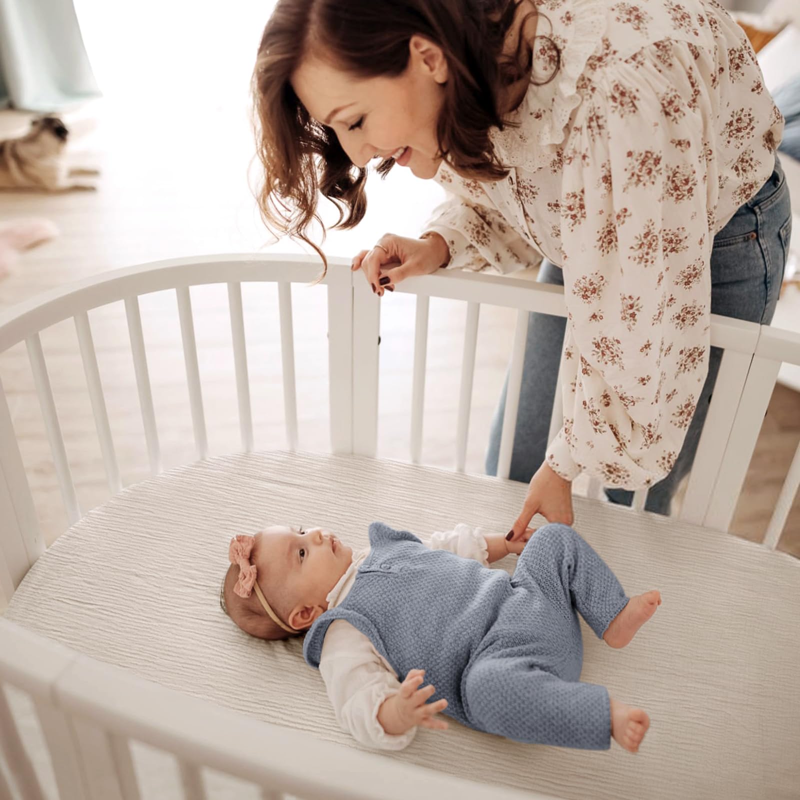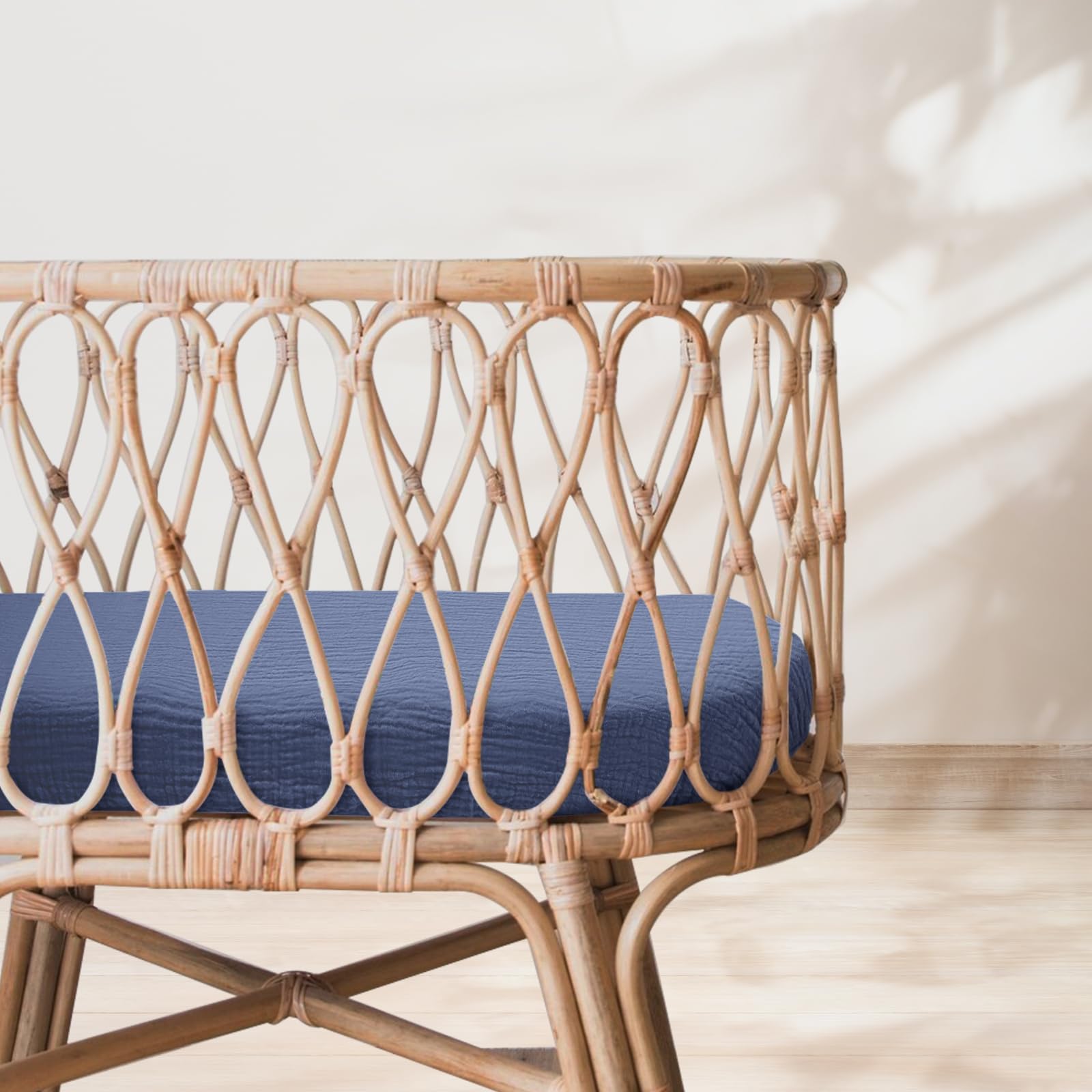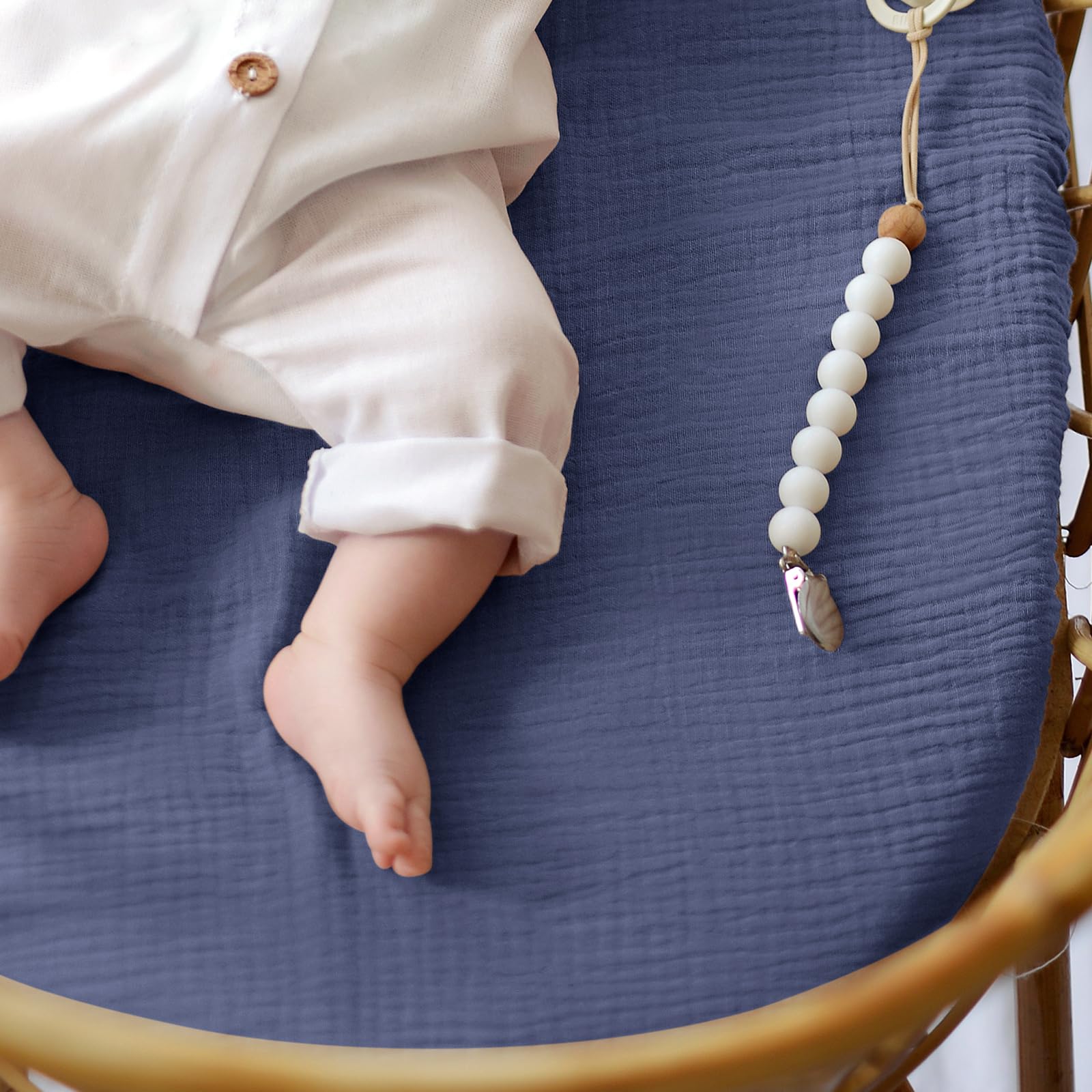MUSLIN COTTON - The bassinet sheets are made of 100% muslin cotton.The soft and breathable material is gentle on your baby's skin and doesn't cause any irritation.