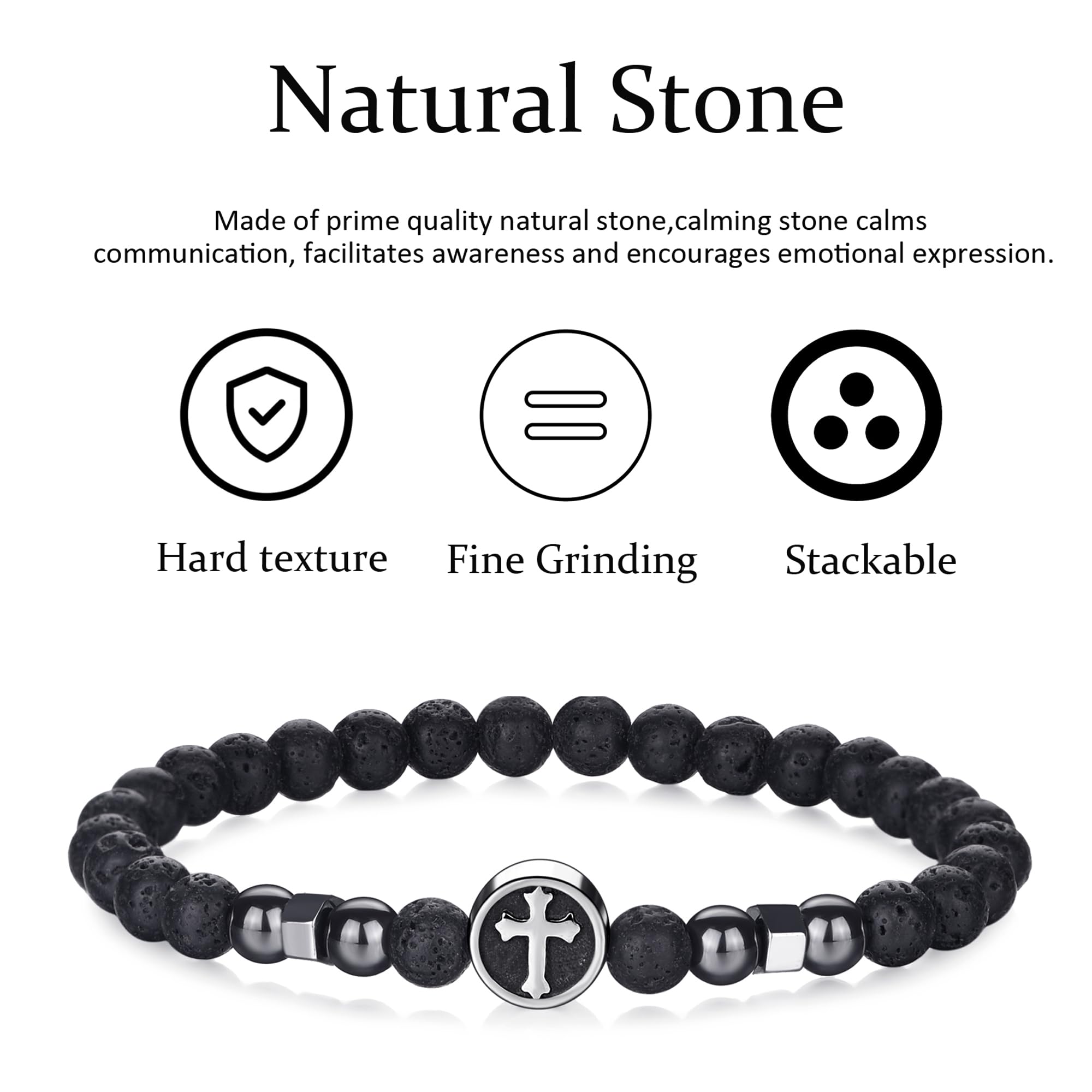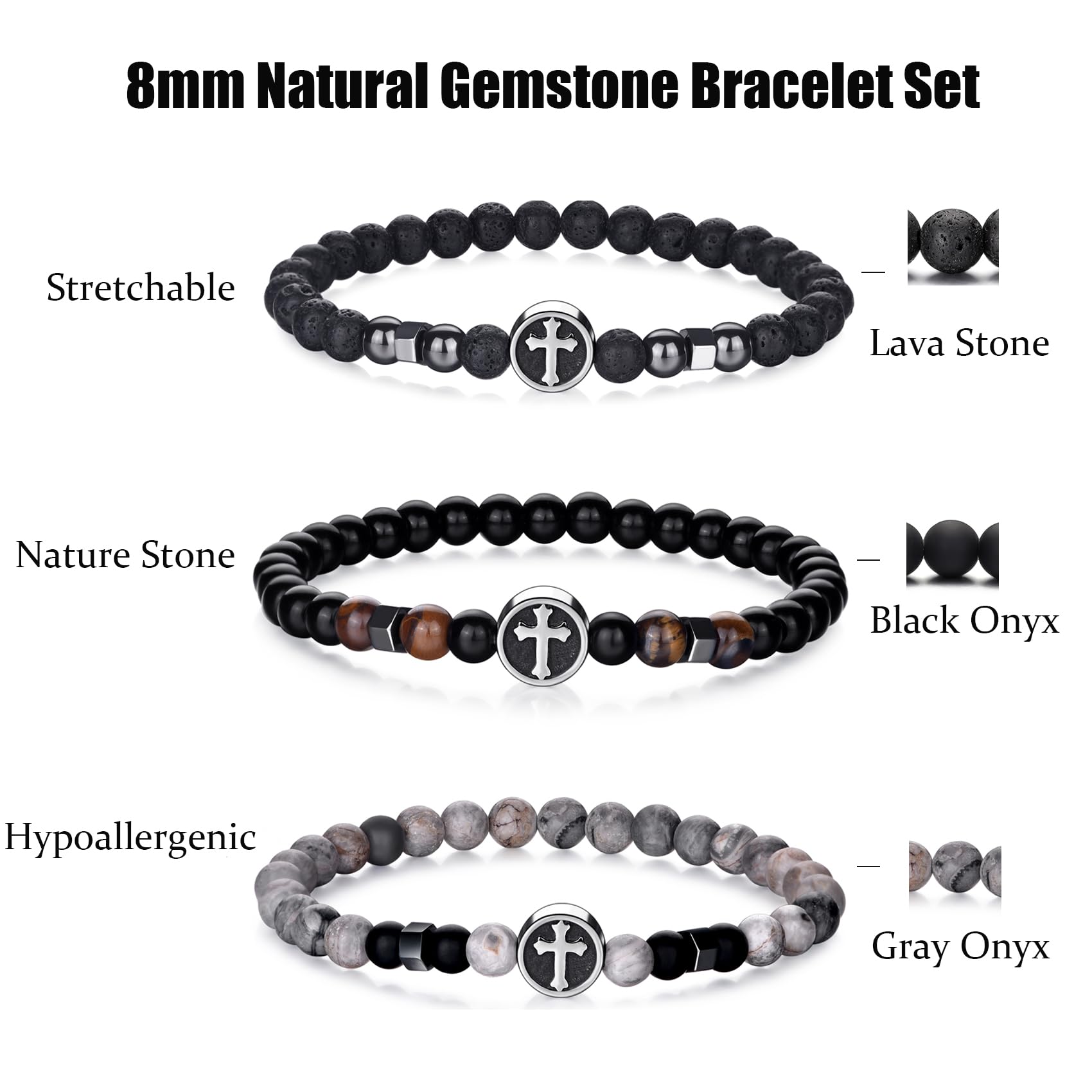 Beaded Cross Bracelet Size:The cross bracelet for men can Stretch,Bead size:8mm,Adjustable Range: 7.3''-10.4''. Perfect sizes as gemstone bracelet for both men and women UNISEX. Natural cross bracelets is a perfect bracelet jewelry accessory for any occasion to change your style and mood.