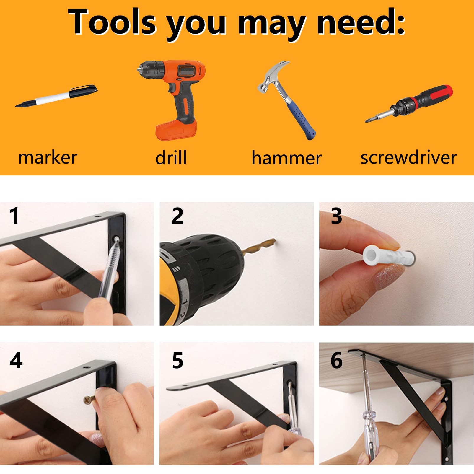 4 Pack Shelf Bracket:Dimensions is 8 Inch x 5 Inch, max weight capacity per pair is 110 lb / 50 kg
