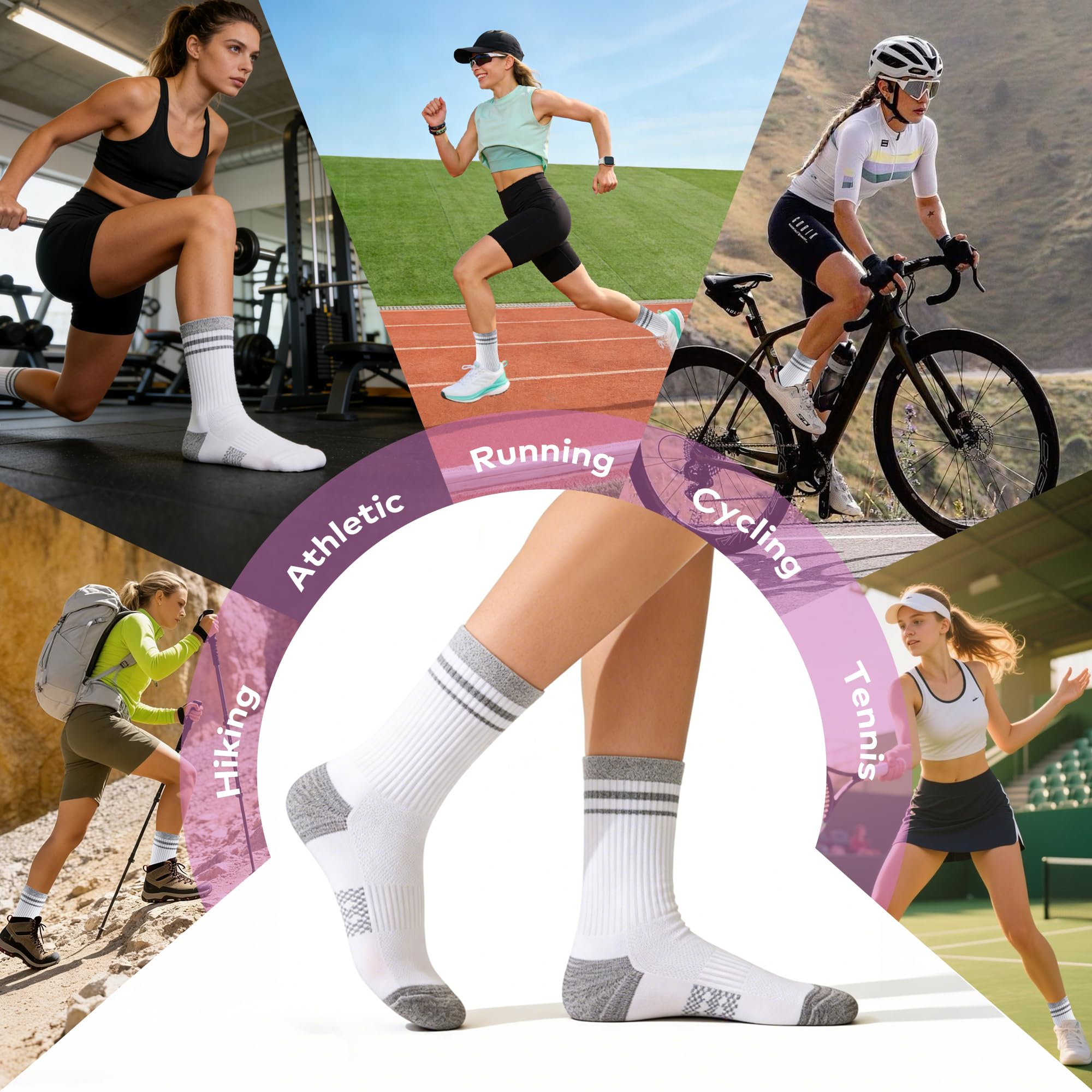 360-Degree Arch Stability Support: Our integrated elastic compression band wraps the midfoot to provide continuous stability. This arch support prevents the socks from slipping or bunching inside your sneakers, ensuring a secure and natural fit for tennis, travel, and intense movements
