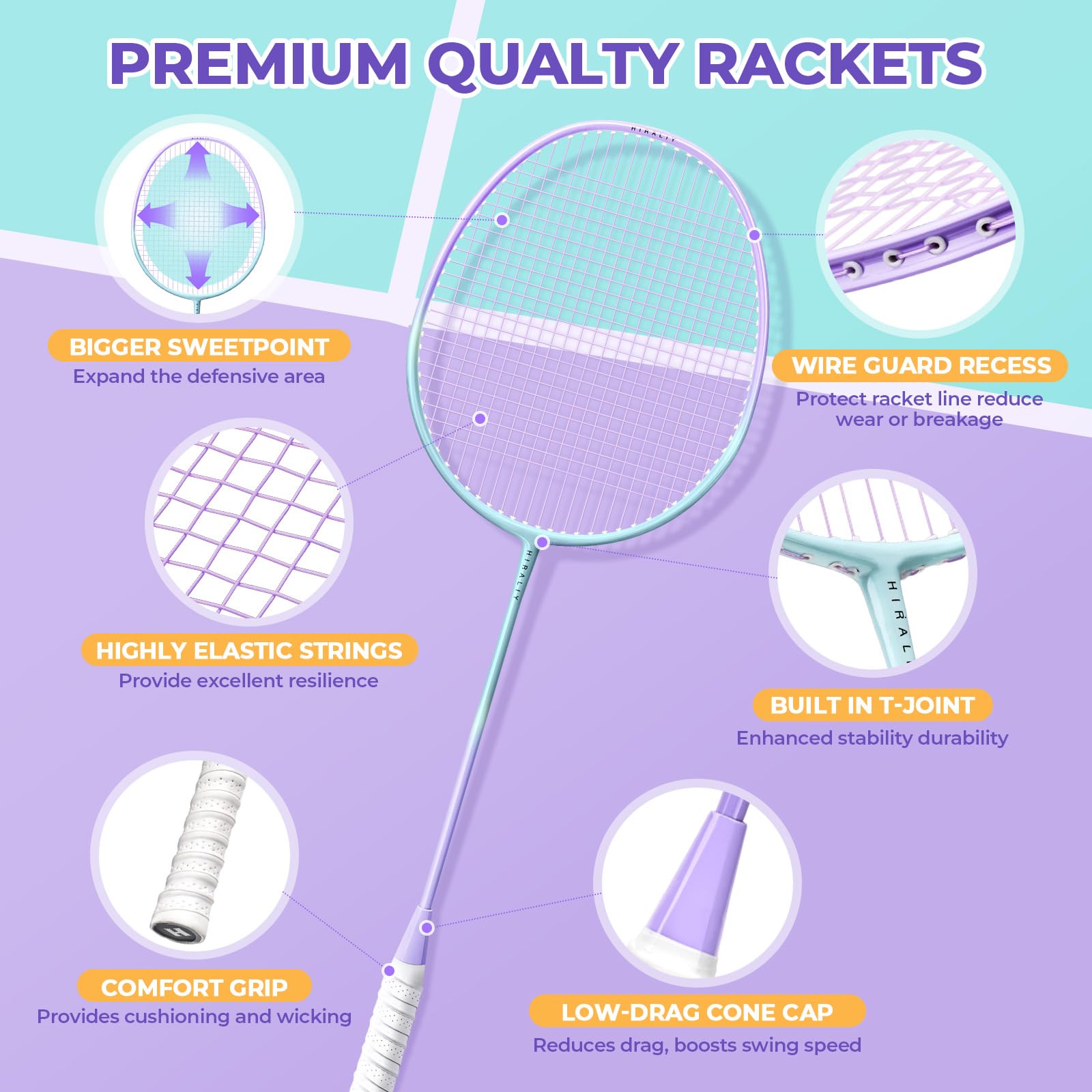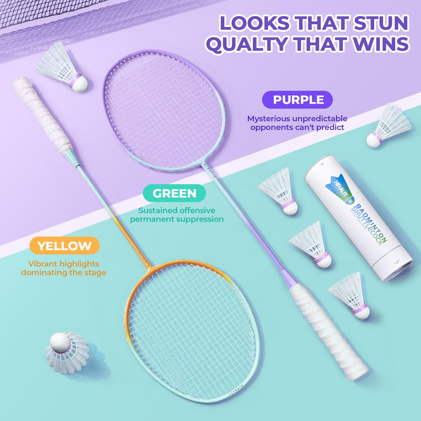 Durable Aesthetics Rackets: HIRALIY badminton racquet are made from premium material for durability; Its eye-catching high-level color matching makes you stand out on the court. Lightweight yet sturdy, they offer the perfect balance of power, control and style