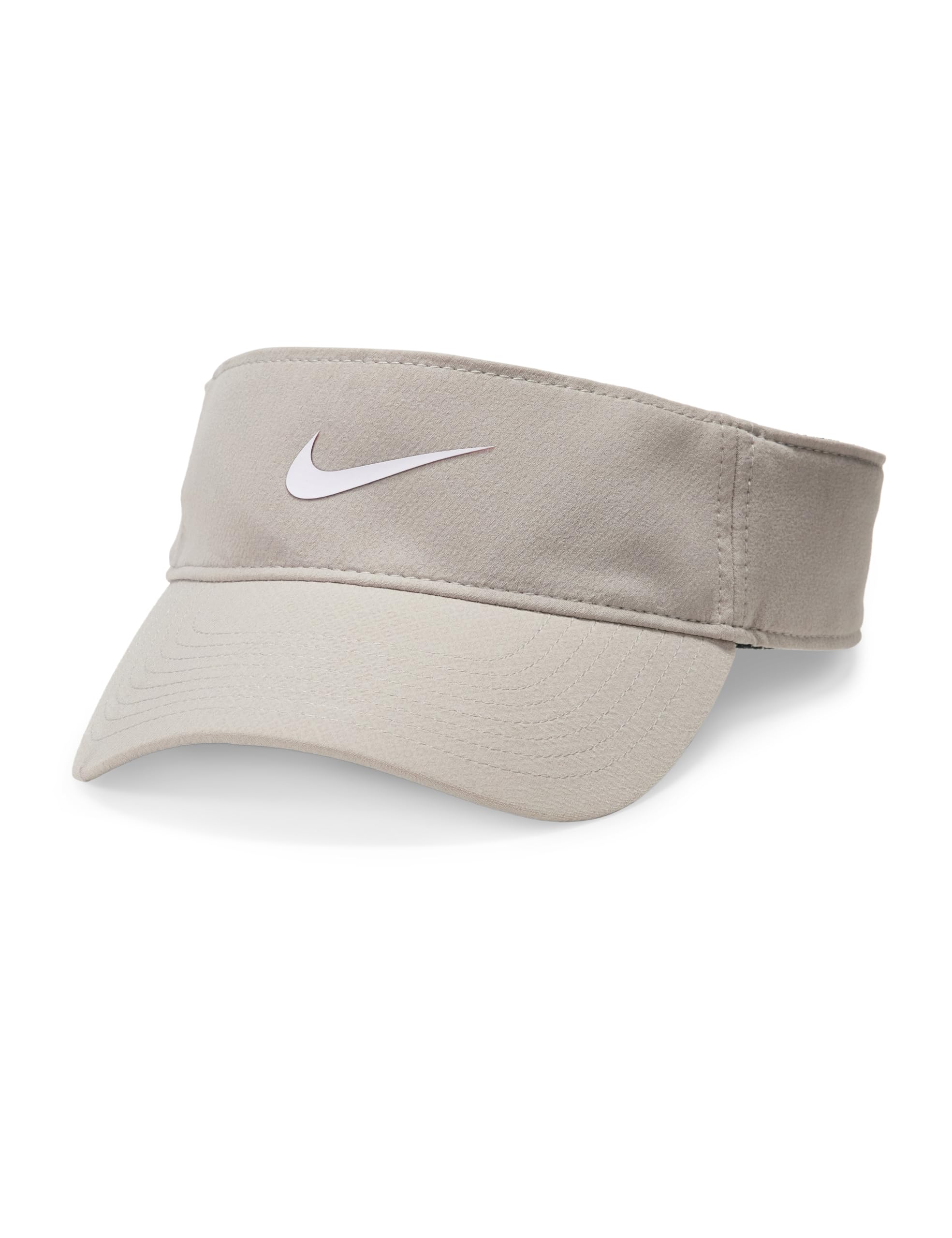 Description DRI-FIT visor with pre-curved Aerobill construction for lightweight comfort. Engineered laser perforated ventilation around the entire visor through fabric and liner, with focused density on front crown where it?s needed most. Adjustable one-hand quick-adjustable closure with low profile hook and loop fastener and silicone pull tab. Swoosh design trademark in high density embroidery. 100% POLYESTER.