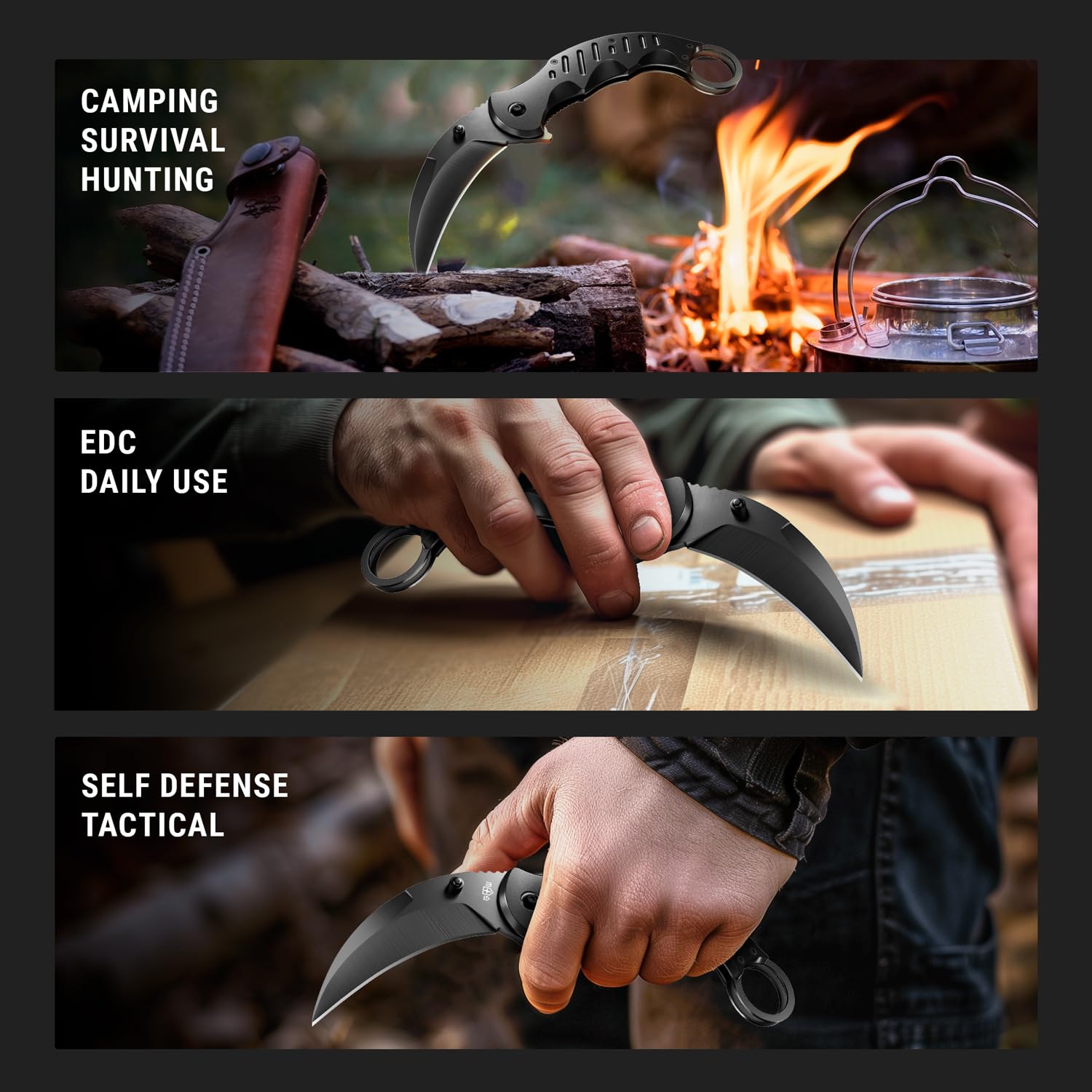 Perfect tactical knife for everything - Camping, EDC, Hiking, Urban, Travel, Work, Self Defense, Bushcraft, Hunting, Fishing, Military & Army needs, DIY Activities, Survival, Emergencies . Good for indoor and outdoor use. Small pocket knife. Compact knife to be carried in a purse, backpack. Army tactical pocket knives for men. Hunting & tactical knives & tools. Fisherman pocket knife. Rescue knife.