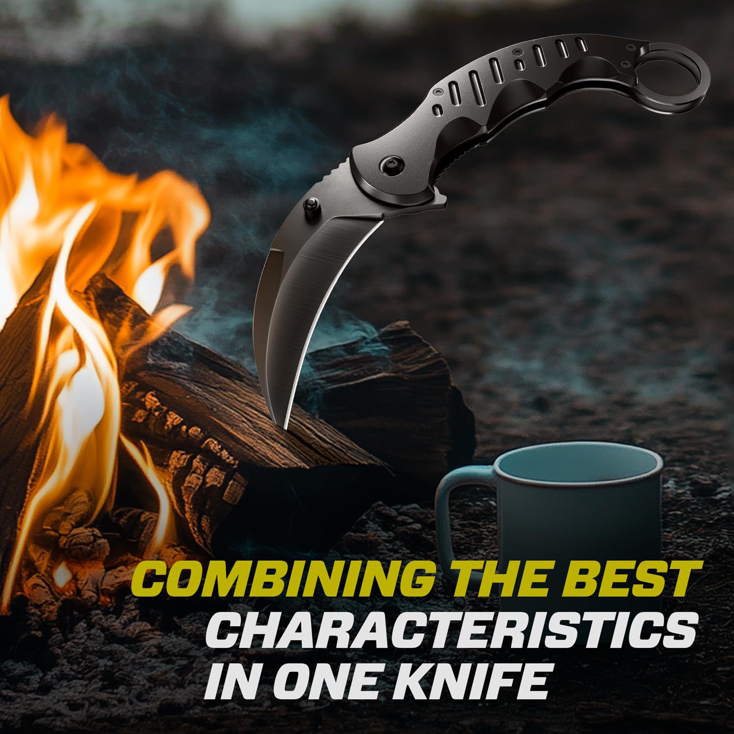 Sturdy construction ensures durability and functionality for outdoor use. Our knife is the best-in-category pocket knife & folding knife, precision-crafted to tackle any task. Whether for everyday carry or outdoor adventures, this versatile knife is your ultimate tool. Add our military tactical knife to your collection for exceptional performance. Cool curved knife for men and women. Cuchillos militares. Self Defense weapons. Navajas de bolsillo. Defensa personal mujer. Cuchillas de trabajo.