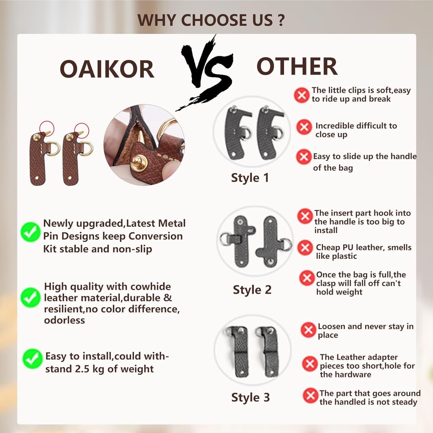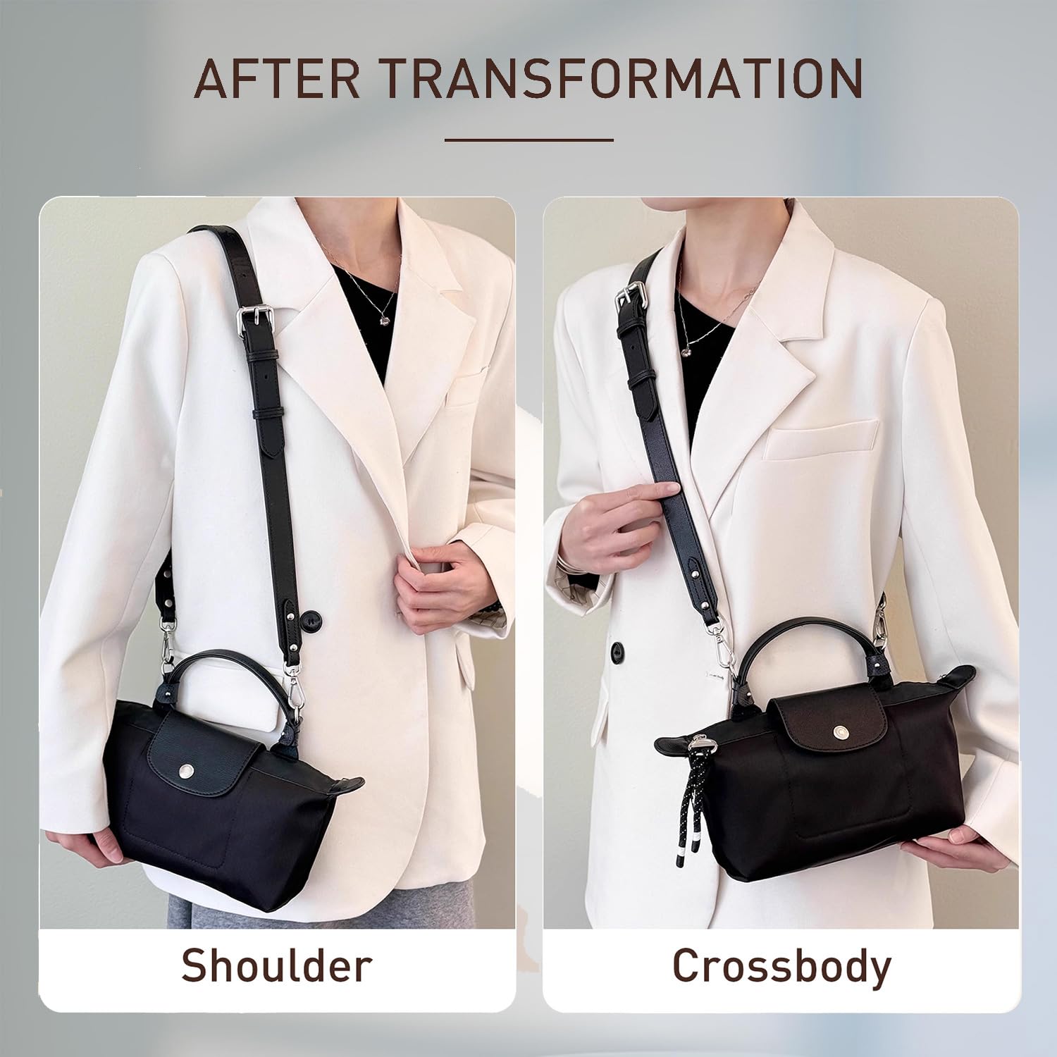 UPDATED ANTI SLIP DESIGN: With the new metal pin design and 4 buckles , the purse straps kit for longChamp le pliage small bag is strong and durable, will not shift or come loose, and has a weight capacity of up to 30KG