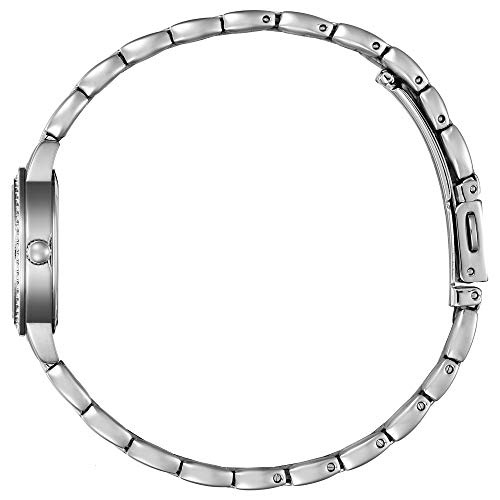 The Quartz is a 24mm watch from Citizen with a stainless steel bracelet and mother-of-pearl face. It has a three-hand dial, and contrasting applied markers.