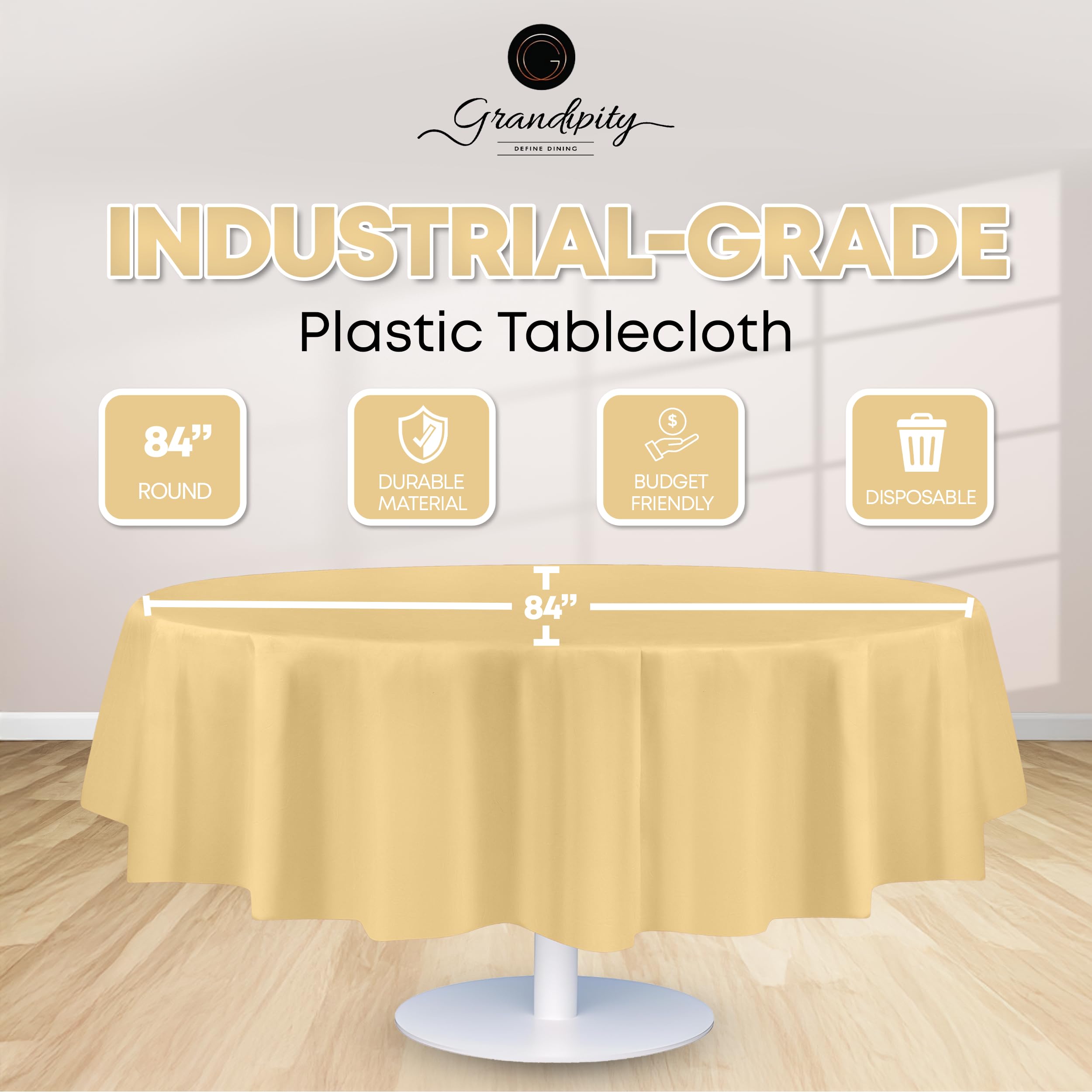 🍒 PERFECT FIT: 84" round tablecloth disposable, covers your round table to perfection. You can also cut it to fit a smaller table. Budget Friendly. Featuring a fade and tear resistant tablecloths, our round table covers easily protect your tables and furniture from scratches, stains and sun rays. Inspires a clean sense of style at any event or meal you’re hosting with these elegant tablecloths.