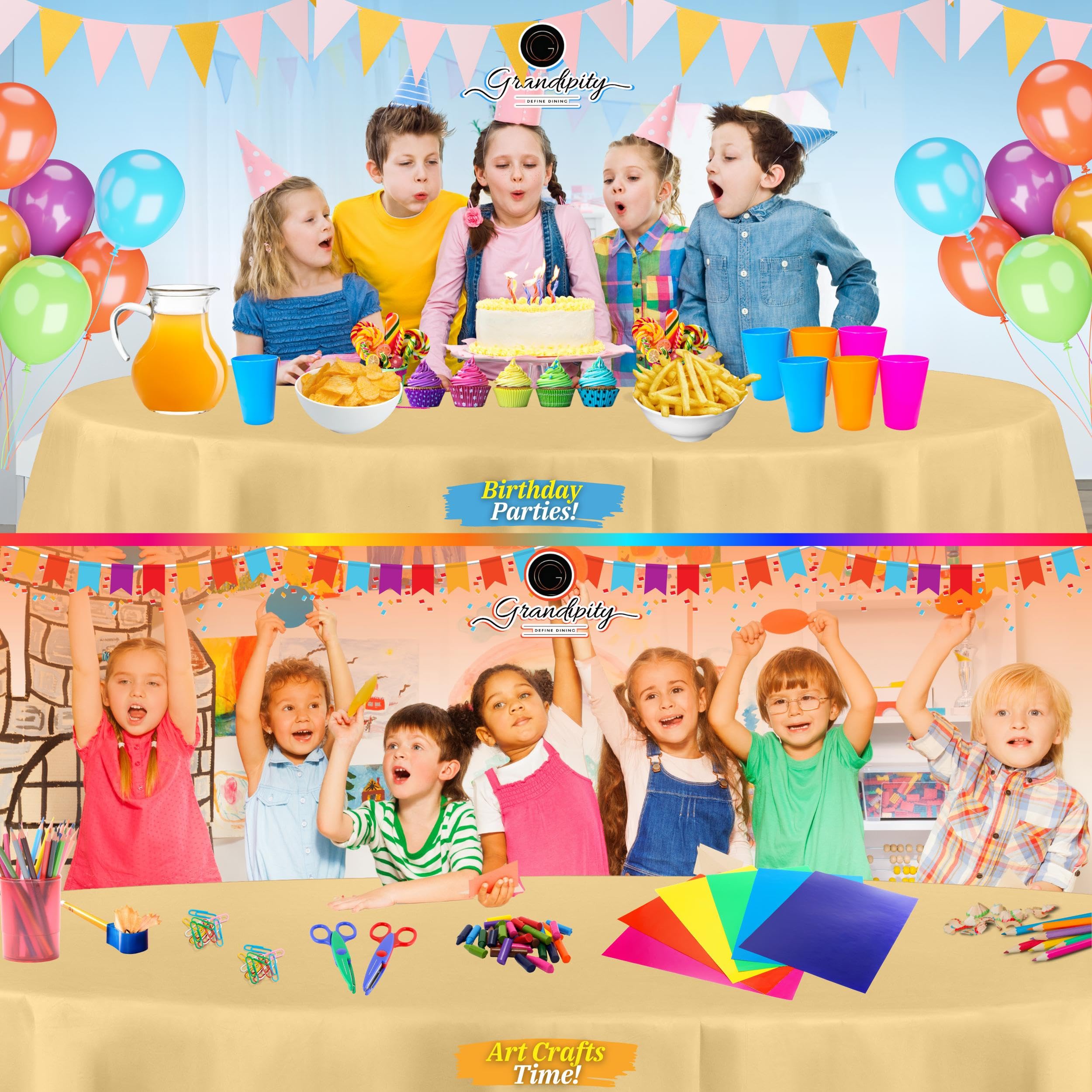 🍓 EASY CLEAN UP: These round tablecloths are great at picking up any messy spills from food, drinks, paint from arts and crafts sessions and more! What’s better? They’re completely disposable round plastic tablecloths, so enjoy the party without the hassle of cleaning up.