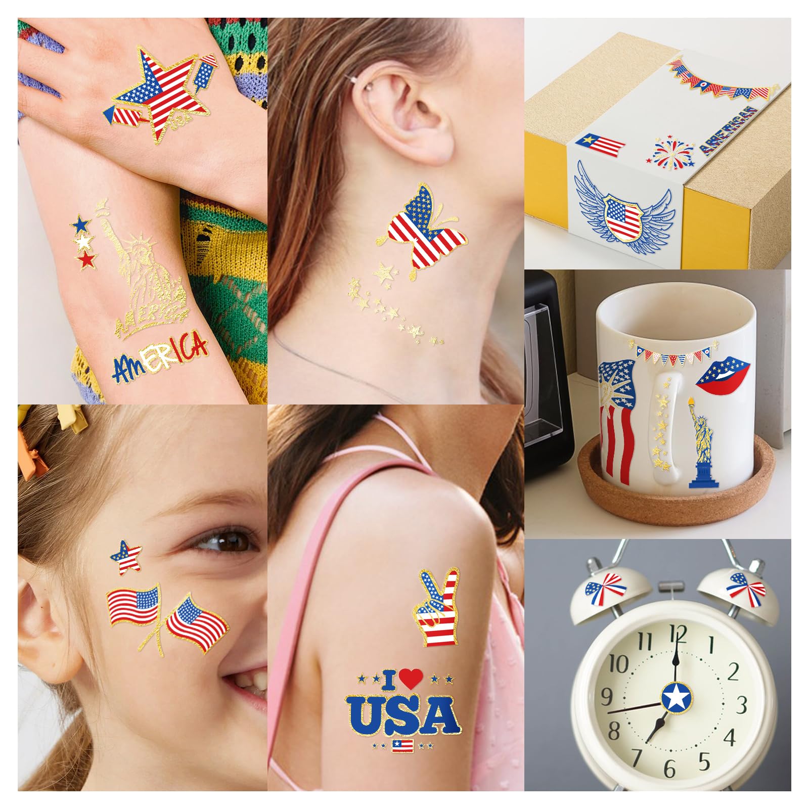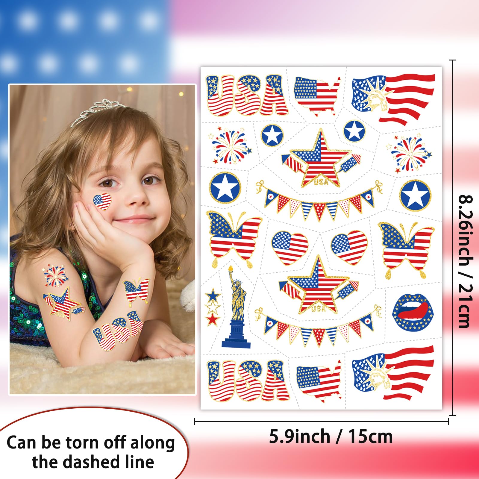 [MULTIPLE USAGE] You can use these tattoos on your face, arms, calves, etc. Suitable for Independence Day, party decoration & supplies, carnival and other festivals