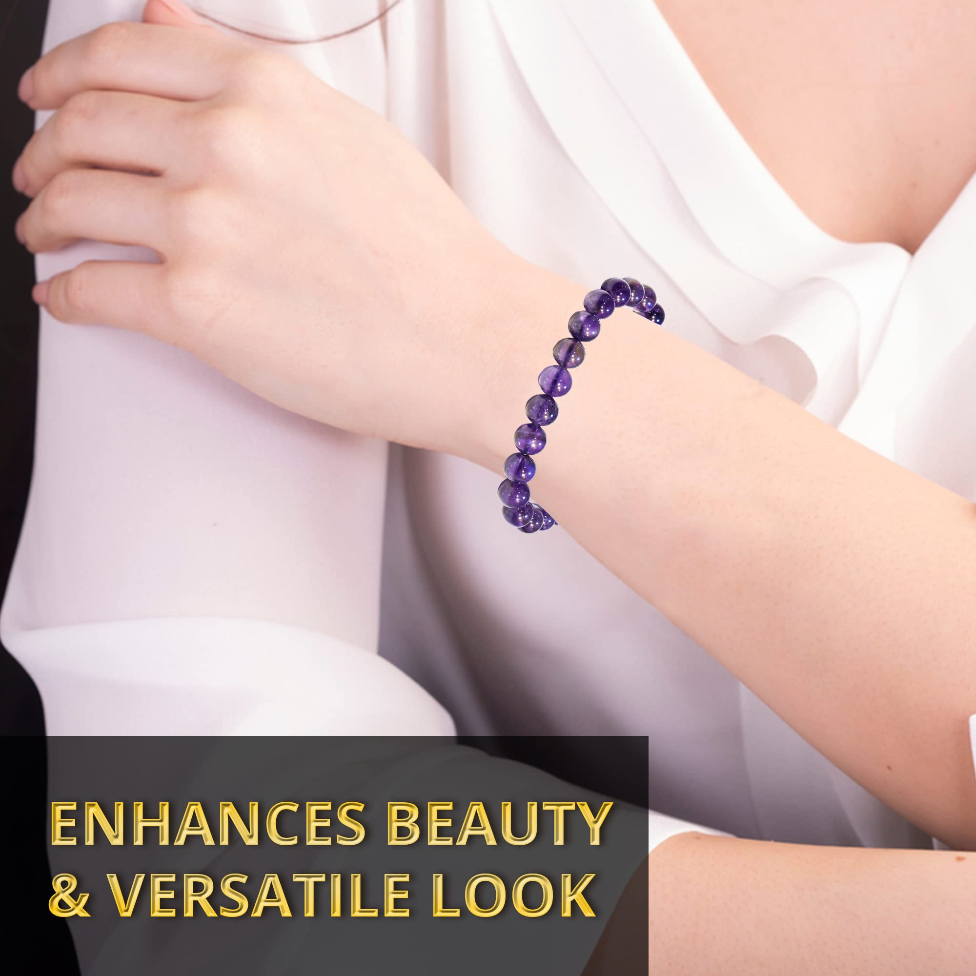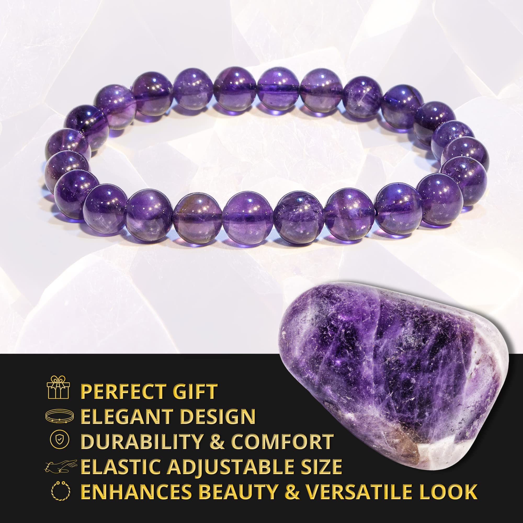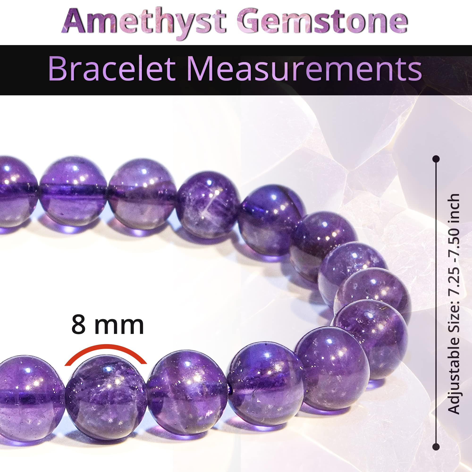 Superb Craftsmanship: The Amethyst bead bracelet for women and men are made with high-quality, real gemstones, carefully selected, prepared, and polished to perfectly 8mm round beads that are safe for the skin and resistant.