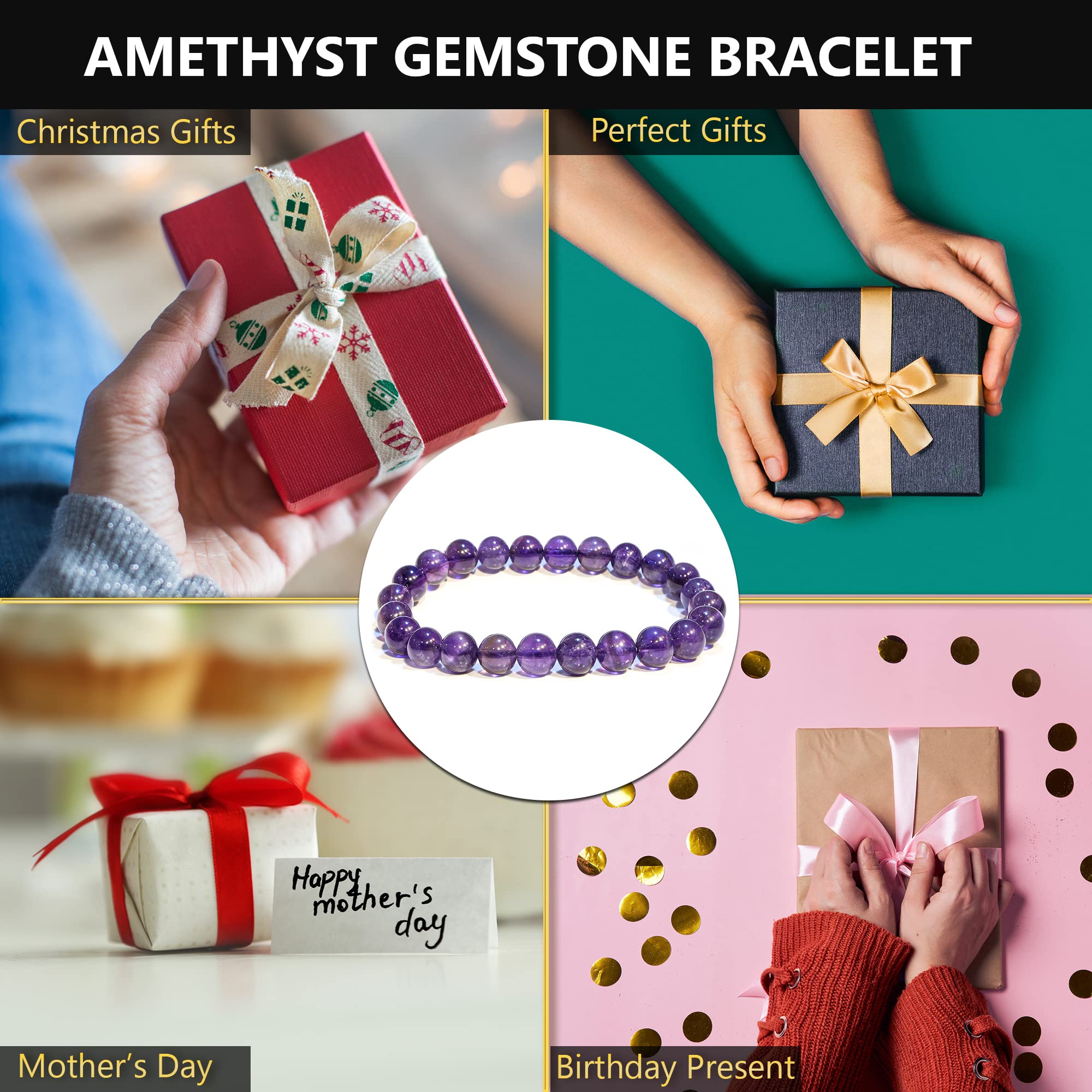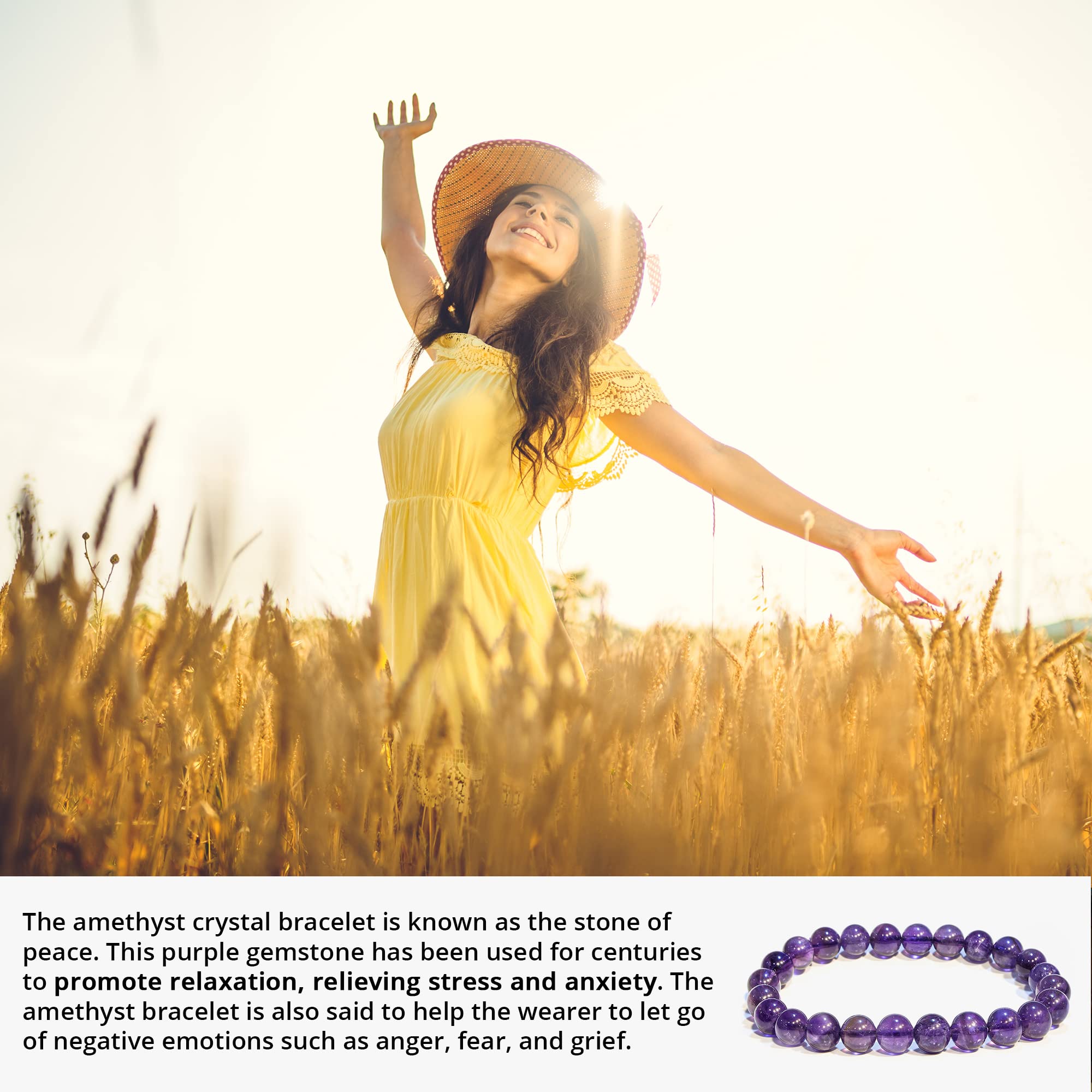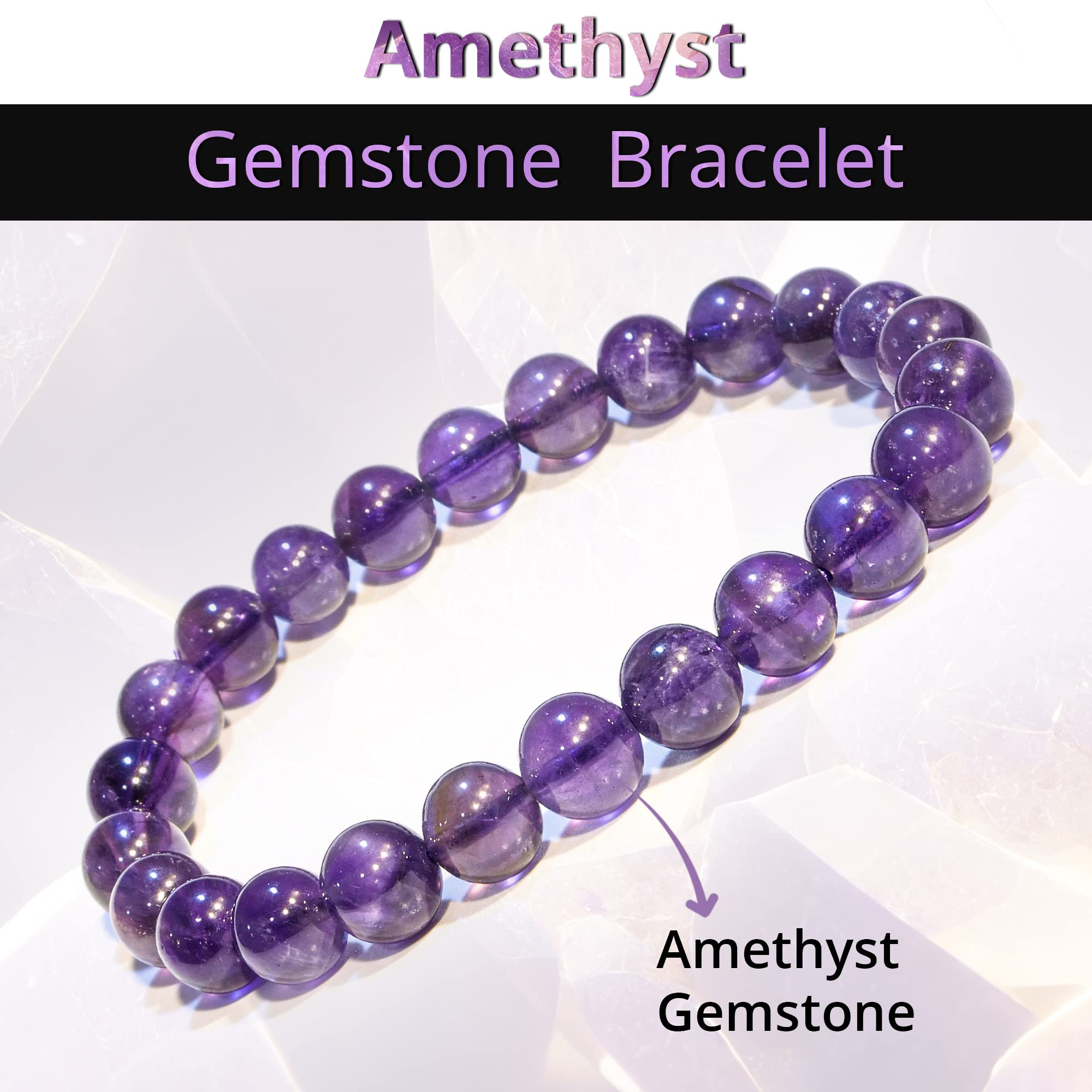 Superb Craftsmanship: The Amethyst bead bracelet for women and men are made with high-quality, real gemstones, carefully selected, prepared, and polished to perfectly 8mm round beads that are safe for the skin and resistant.