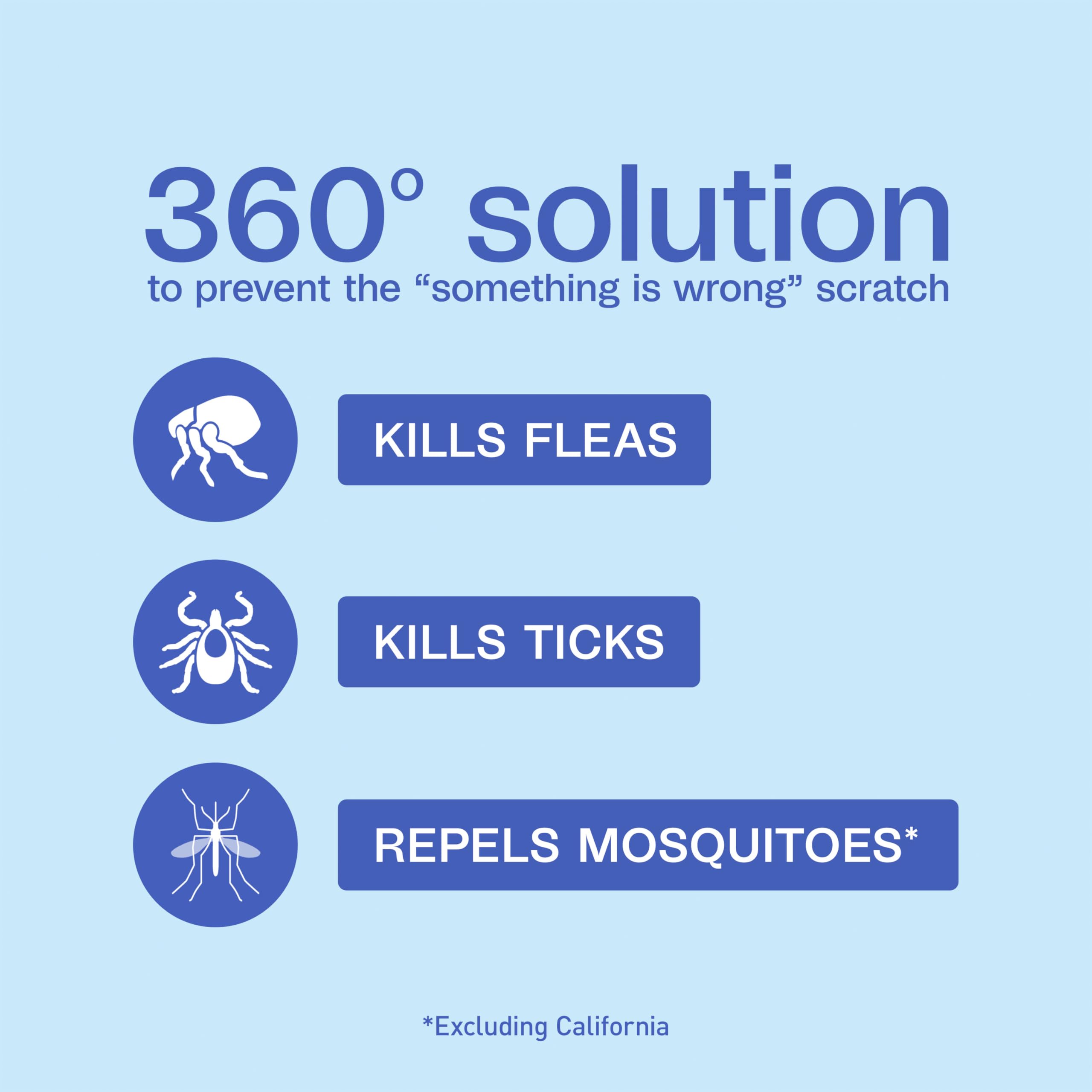 EFFECTIVE FLEA & TICK TREATMENT: Kills fleas and ticks including deer ticks and prevents new flea infestations while repelling mosquitoes* for 6 months (*Excluding California)