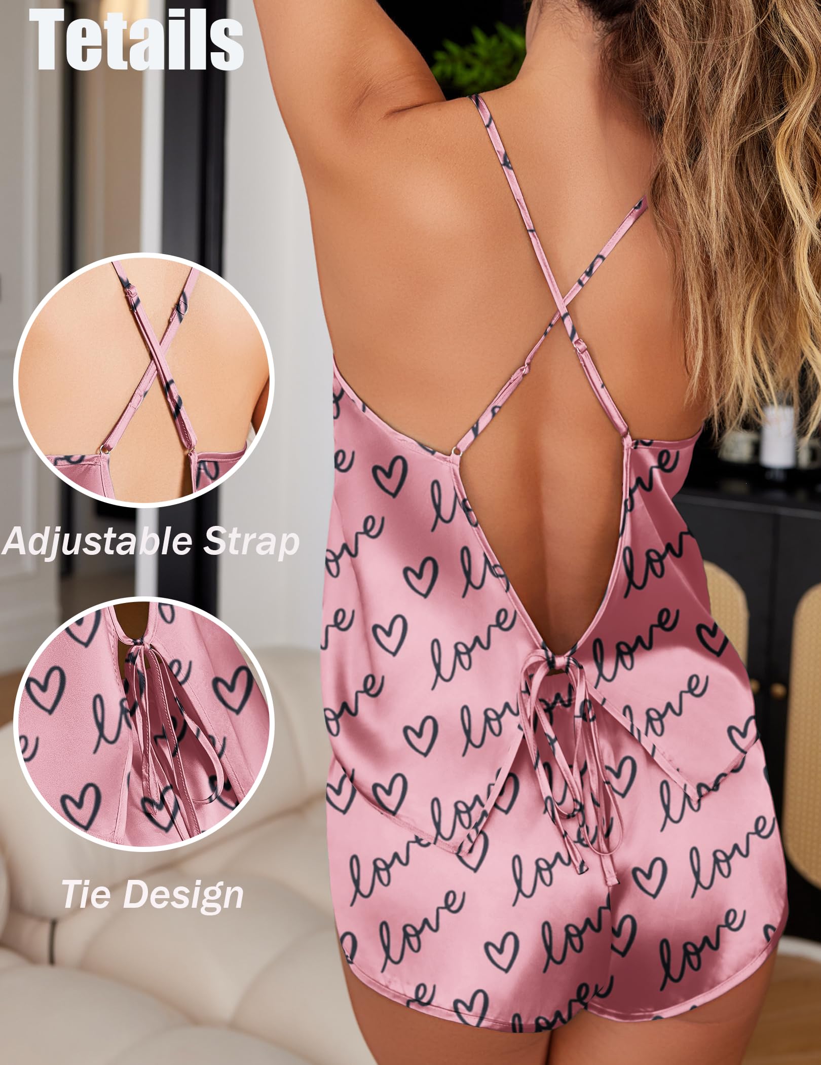 UNIQUE DESIGN: Ekouaer lingerie for women featuring adjustable shoulder straps and bow decoration; The women's pajamas lingerie sets design with fine condole belt, leak the back of half, tie-in shorts, satin pajama set for women make you more comfortable and elegant