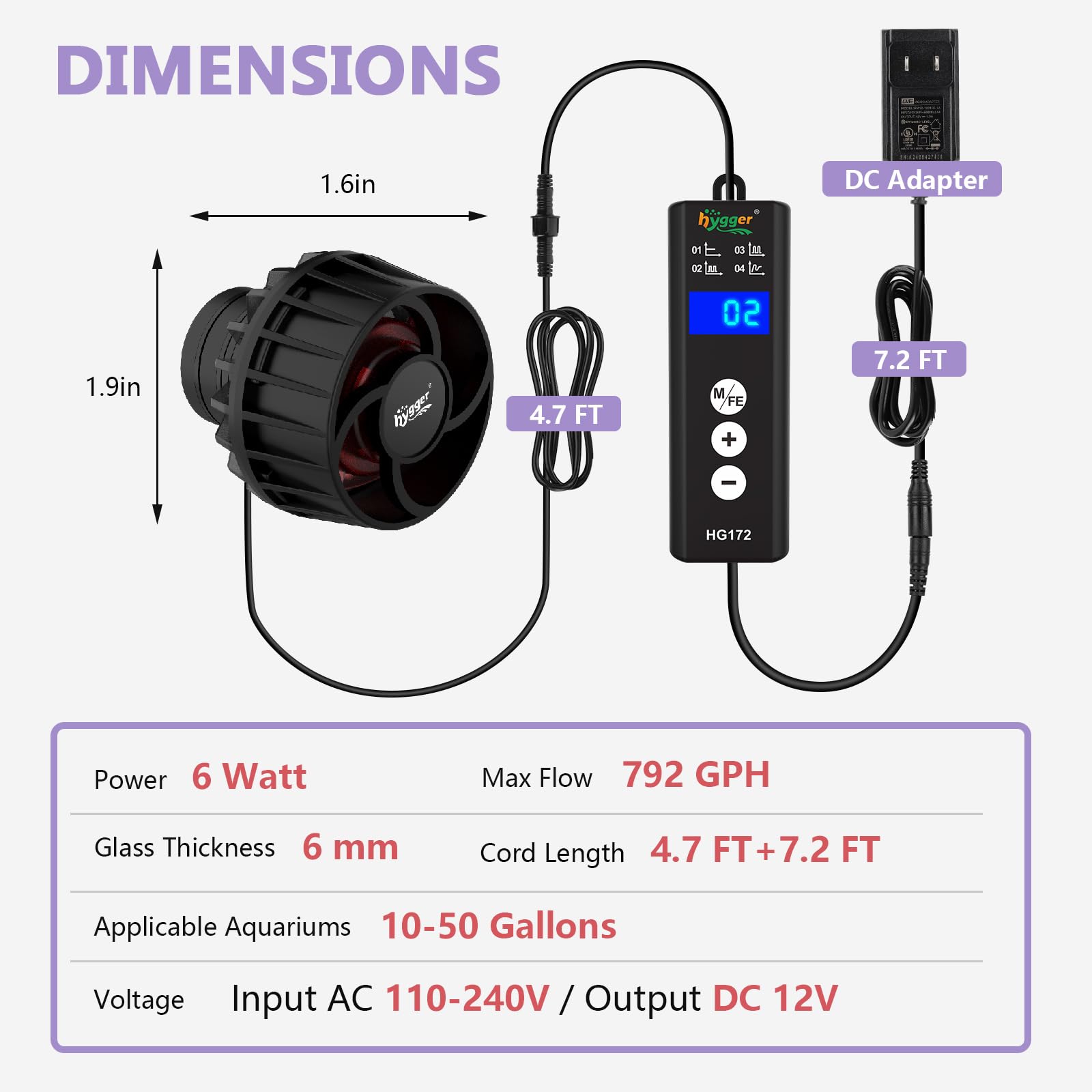 Safety DC Pump:With a DC 12V 6W powerhead, the max flow rate up to 792 GPH, it provides plenty of flow while remaining quiet. Also comes with a hard cover for the intake to prevent small fish and anemones from getting sucked in