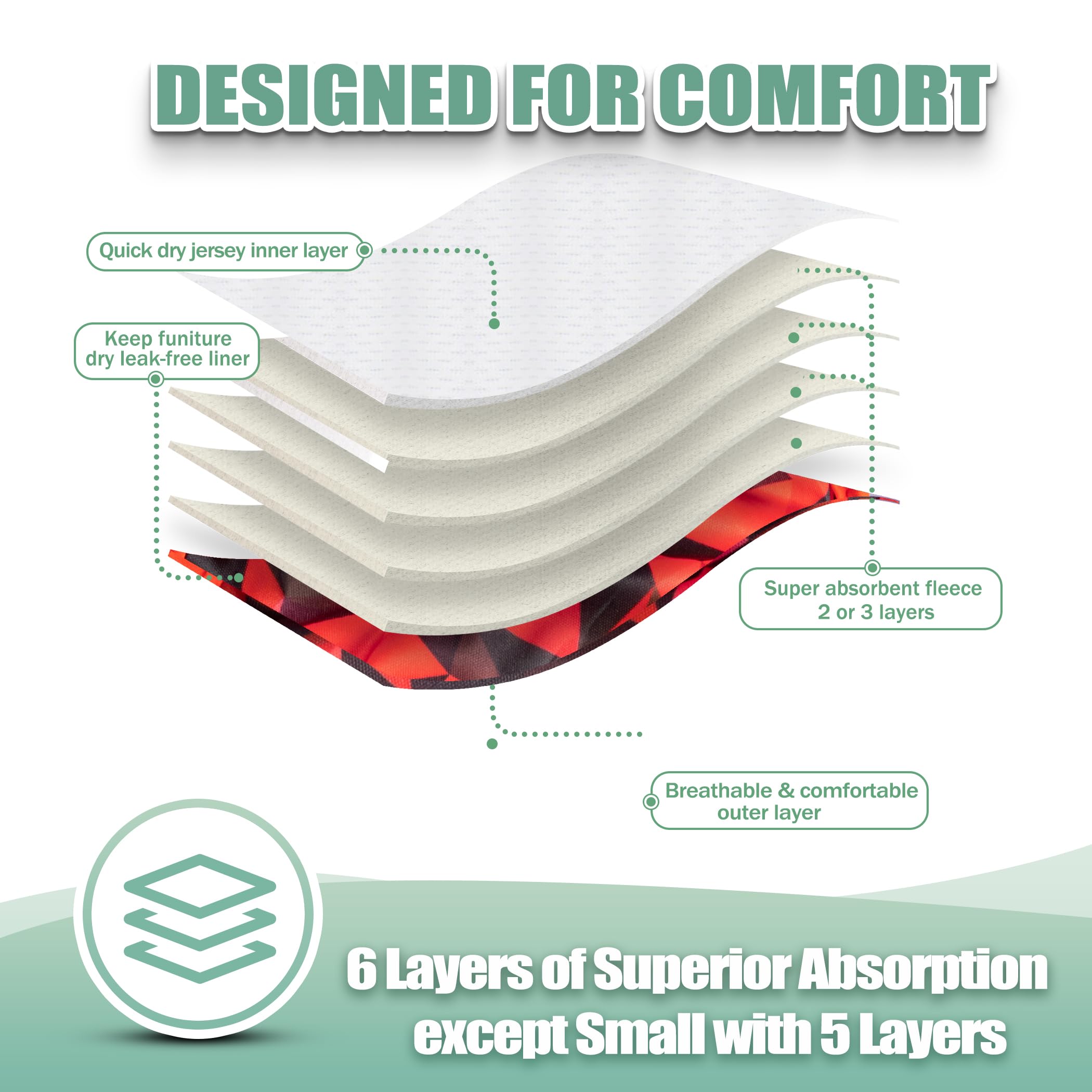 Strong Absorbent Cloth Dog Diapers - Pad is sewn into the diaper and a leak-free outer layer to keep off leaks and damage to rugs, carpets, chairs and sofas.