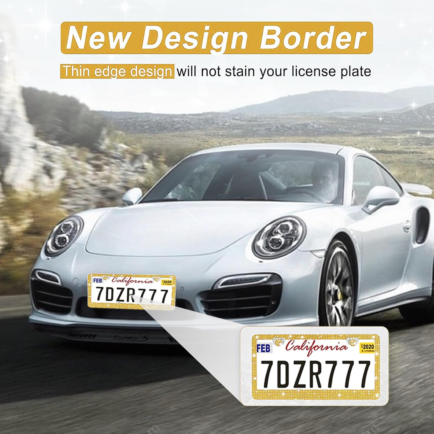 【Exquisite Design】 -- This license plate has a narrow frame and will not take up too much space in your car. It is small and cute. The frame is sparkling under the sun and at night. It is attractiveand dazzling.