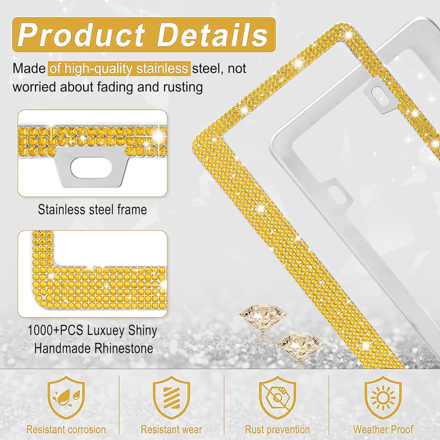 【High Quality Stainless Steel Frame】 -- This bling gem license plate frames use special mixed waterproof glue,to secure the crystal not to falling.Made of high-quality stainless steel,chromemirror polished,no worry about fading and rust,it can be easy to cooperate with any paint job.