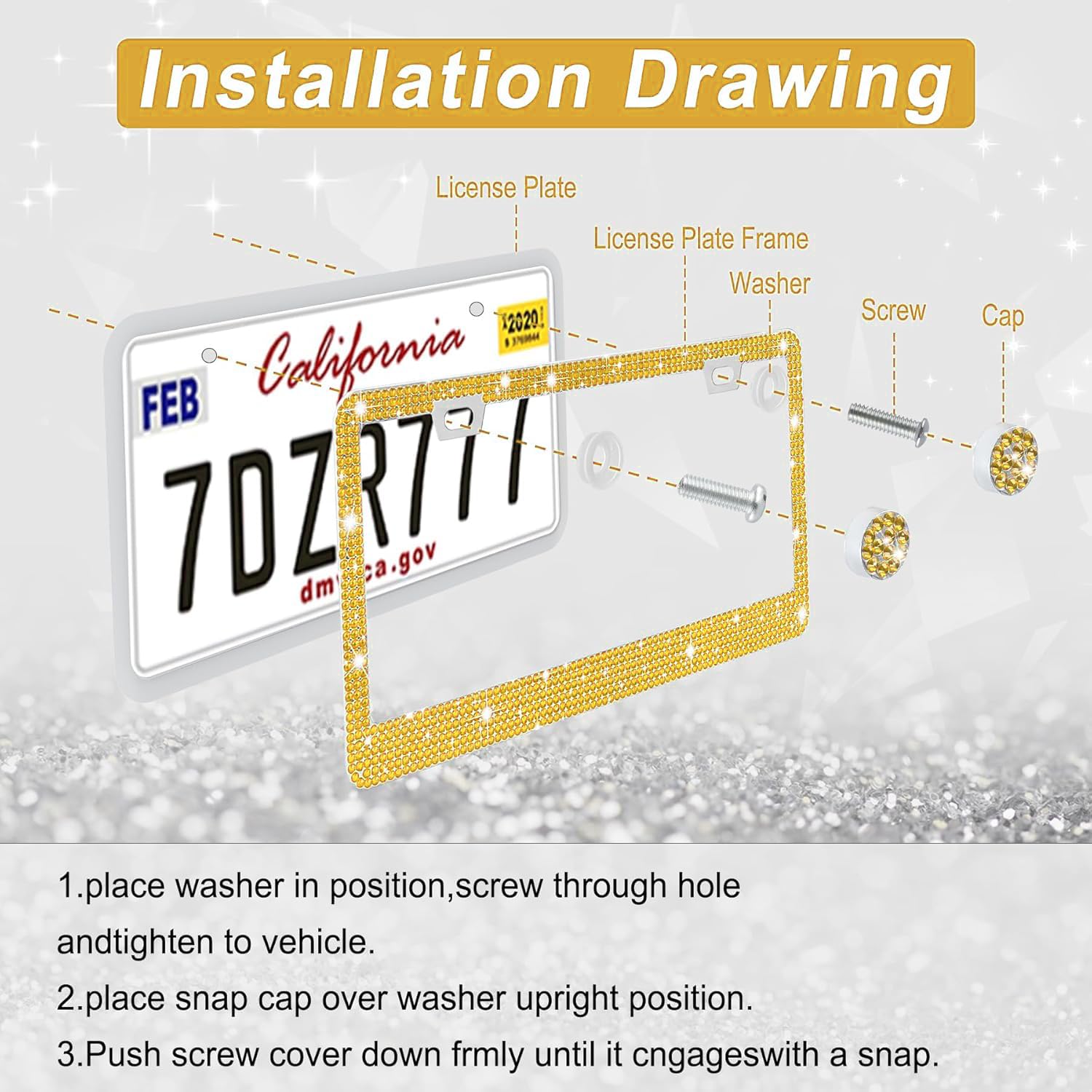 【Best Gifts】 -- Beautiful sparkling license plate frame is ideal for cars,trucks or trailers,a warm gift for friends and family on Christmas and Birthday.Your satisfaction is our top priority, if you have any questions, please contact us, we are always waiting for you here.