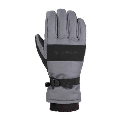 Description Carhartt Men’s WP gloves (A511) are all-purpose winter gloves. Made with ultrasoft insulation, waterproof inserts, and sweat wicking technology, these gloves will keep your hands warm and dry when the temperature plummets. Durable, reinforced glove shells with a grippy palms allow your hands to effectively work outside on cold days. Soft fleece cuffs have adjustable wrist straps to keep out snow and slush. A clip off the wrist conveniently keeps gloves together for times you are not wearing them, and the nose wipe often comes in handy. Your hands are your tools. Protect them with the glove designed to outwork them all.