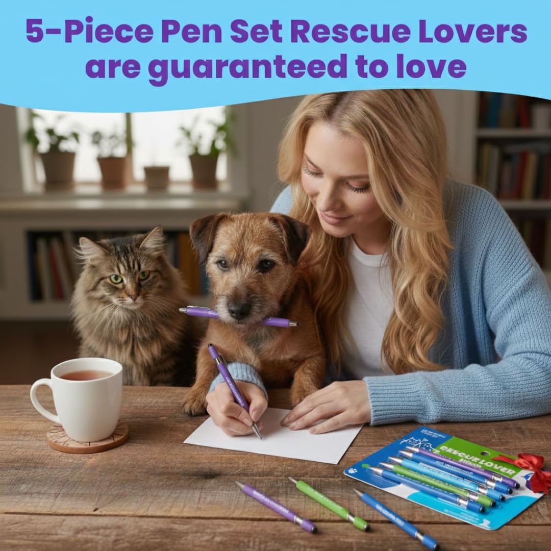 1. PERFECT GIFTS FOR RESCUE LOVERS: Whether they rescues cats, dogs, or both, this 5-pen set is a meaningful gift for animal lovers, rescue moms, vet techs, or anyone who thinks “rescued is the best breed.”