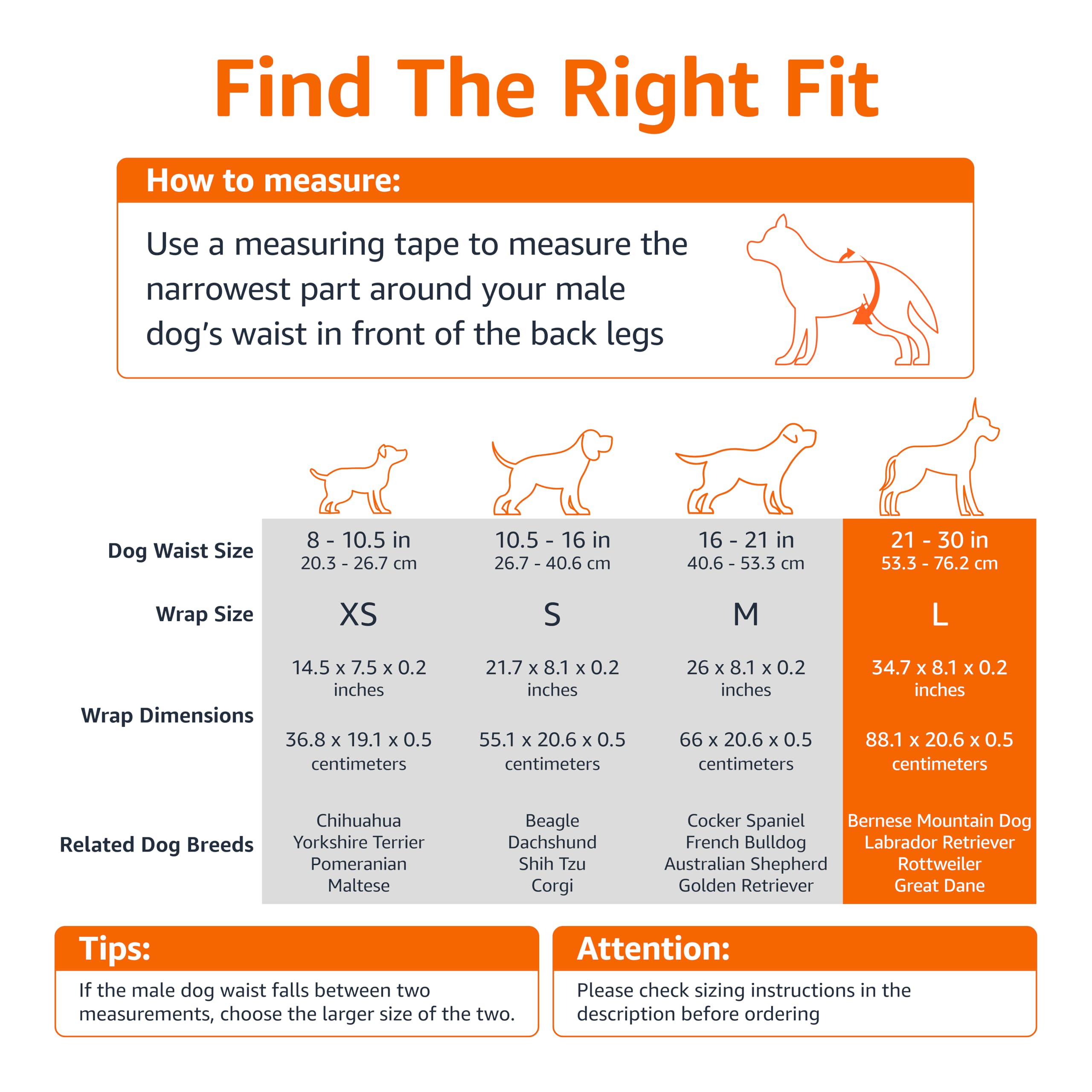 30-pack of Large disposable wraps for male dogs with a 18.9 - 21.3 inch waist