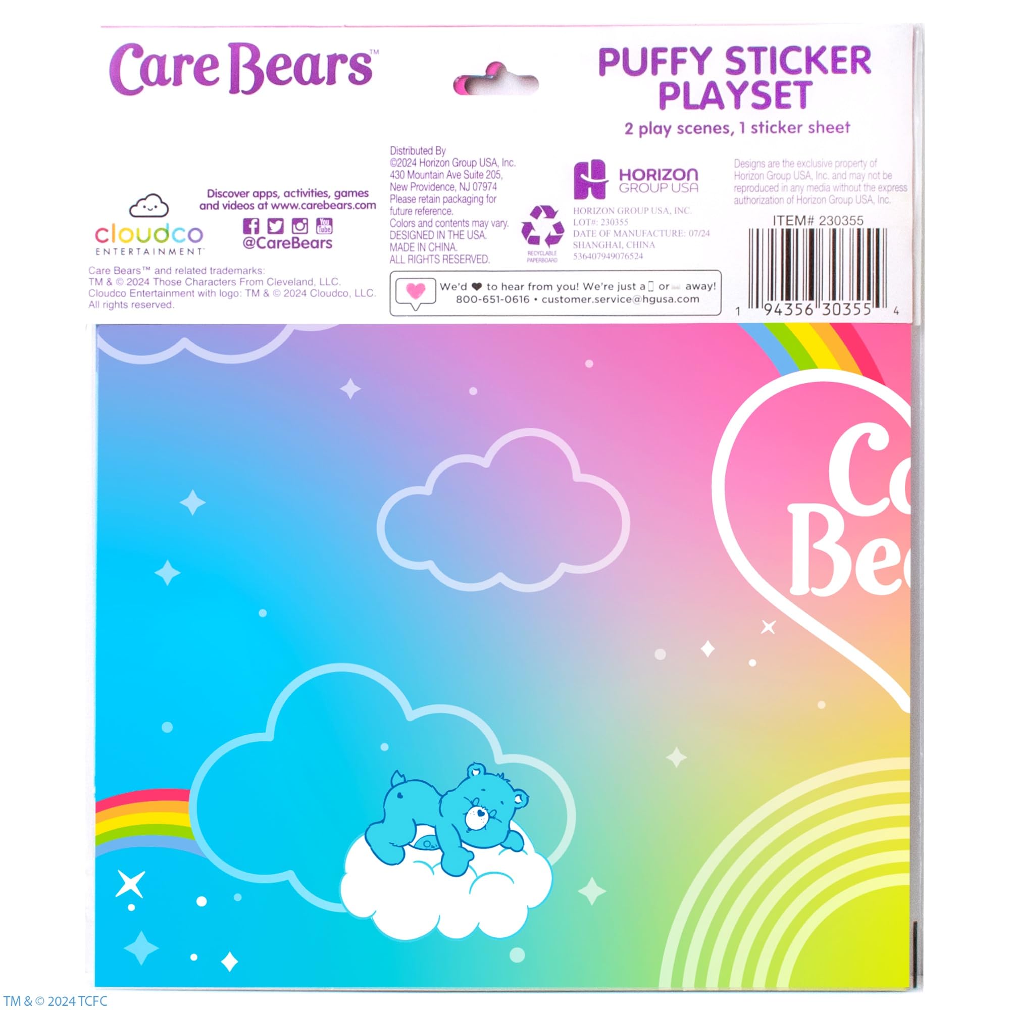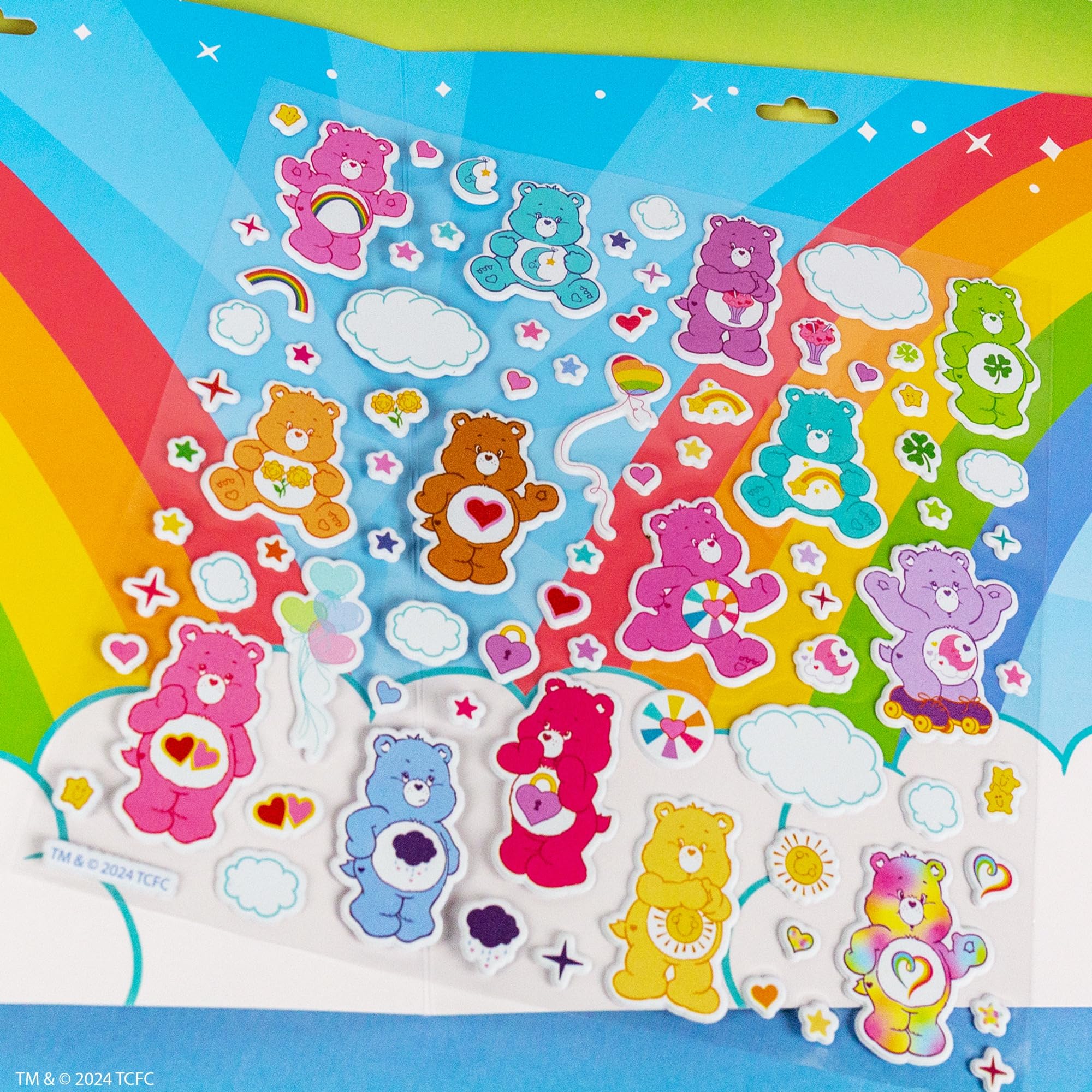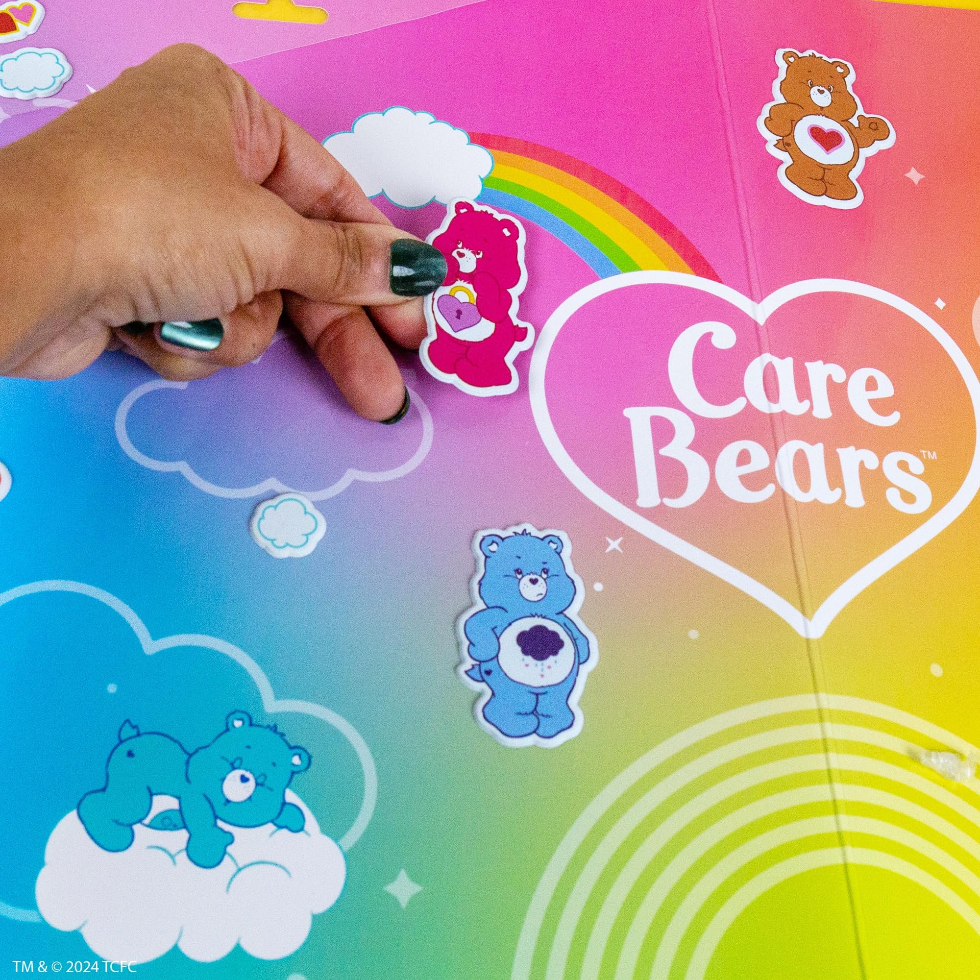 OVER 75 REUSABLE CARE BEARS STICKERS: Play with over 75+ super-soft and squishy puffy stickers you can mix, match, remove, and reuse on 2 different play scenes!