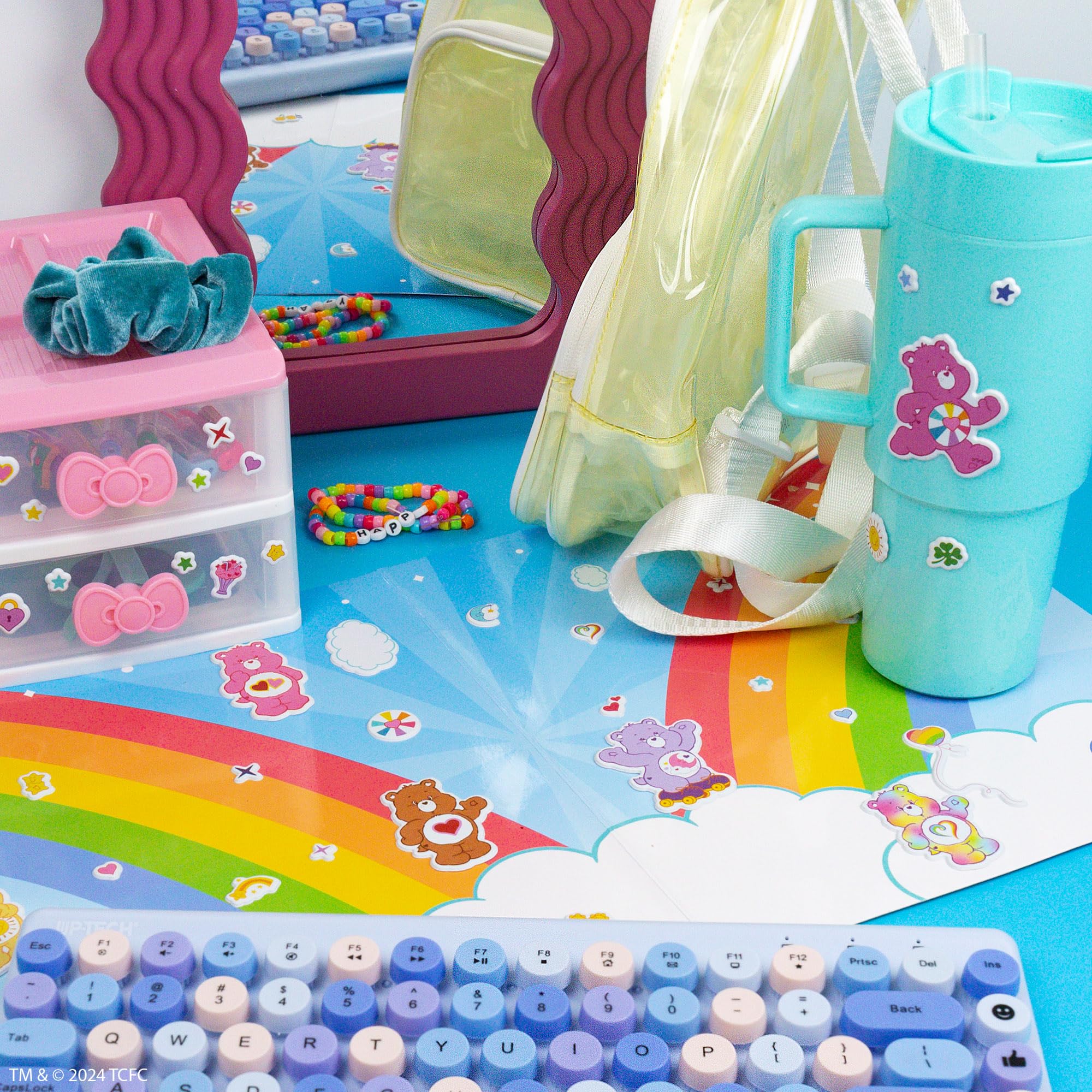 Get ready to create magical adventures with the Care Bears Puffy Sticker Playset! Featuring over 75 squishy, reusable stickers of all your favorite Care Bears like Cheer Bear and Tenderheart Bear, along with rainbows, hearts, and stars, you can create colorful stories again and again! The double-sided play scene folds out to reveal the colorful world of Care-a-Lot and a sunny rainbow scene, providing the perfect backdrop for endless sticker adventures. Great for encouraging creativity and self-expression, this playset offers endless, mess-free fun to enjoy anywhere and anytime. Whether you're looking for road trip activities for kids, sticker books to tell stories with, a fun toddler activity or just cute Care Bears Stuff, this reusable sticker book is the perfect choice! Share the joy and warmth of the Care Bears with this portable, magical sticker playset — perfect for any Care Bears lover age 6 and older.