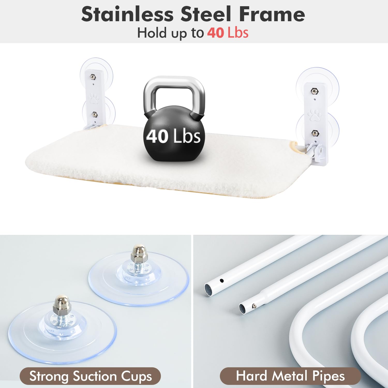 Cordless Cat Hammock:Cordless cat hammock, let your cats freely jump up and down among several beds without being stumbled by rope in support frame. This cat bed provides enough space for cats. Its frame is made of paint stainless steel material and connected by hardware, durable and steady from sun and wind, no distortion and no break. The cat bed is with strong bearing force, supporting up to 30lbs.
