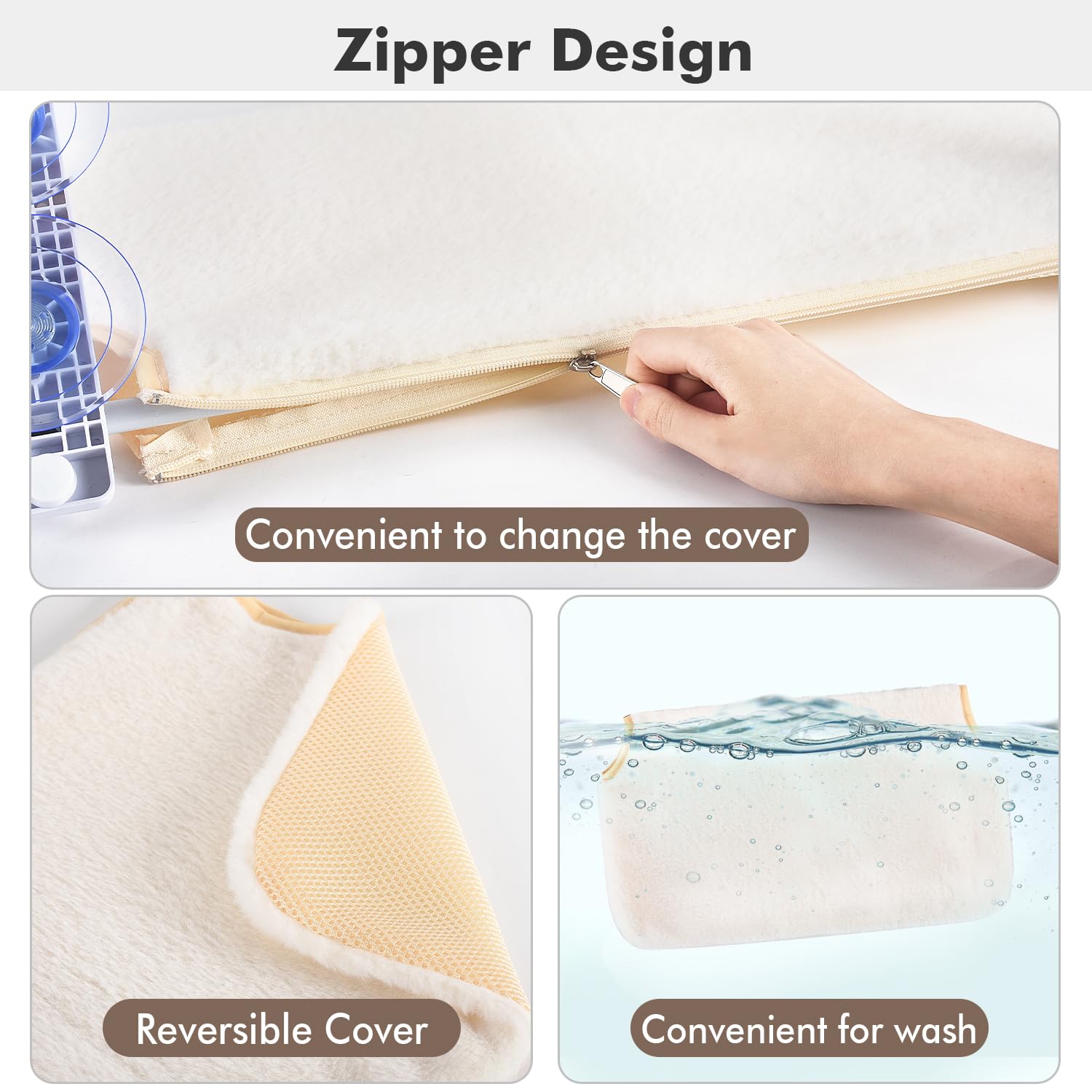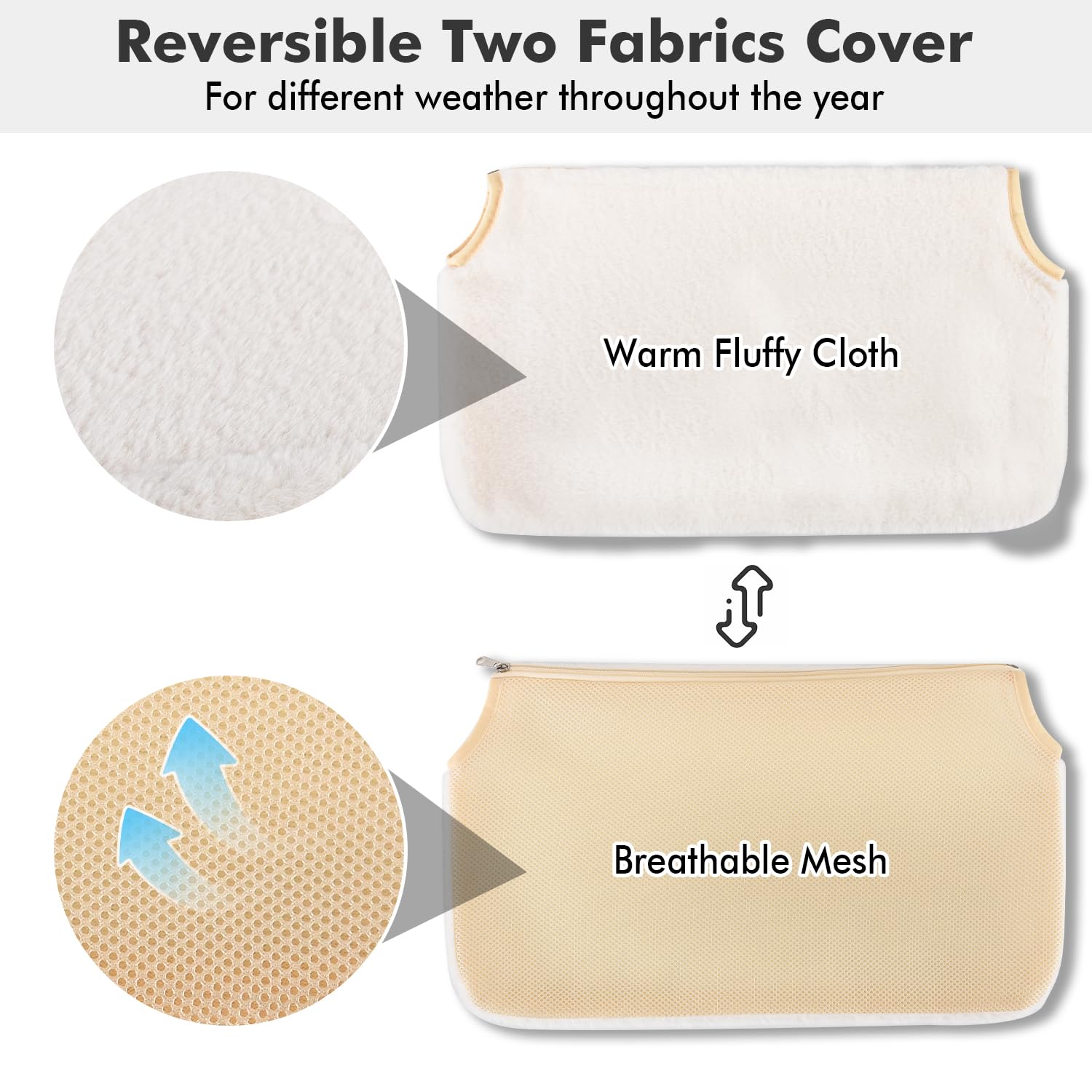 Reversible Two Fabrics Cover:One cat bed comes with a cover made of two different kinds of fabrics. You can change the cover at any time to adapt to different seasons and different room temperature. One is breathable sandwich mesh, which can help dissipate heat. Another is soft faux rabbit fur plush, which helps keep warm. Both of them are bite and scratch resistant, with no chemical smell. Cats can freely amuse themselves in this comfortable bed. The cloth cover is also removable for wash.
