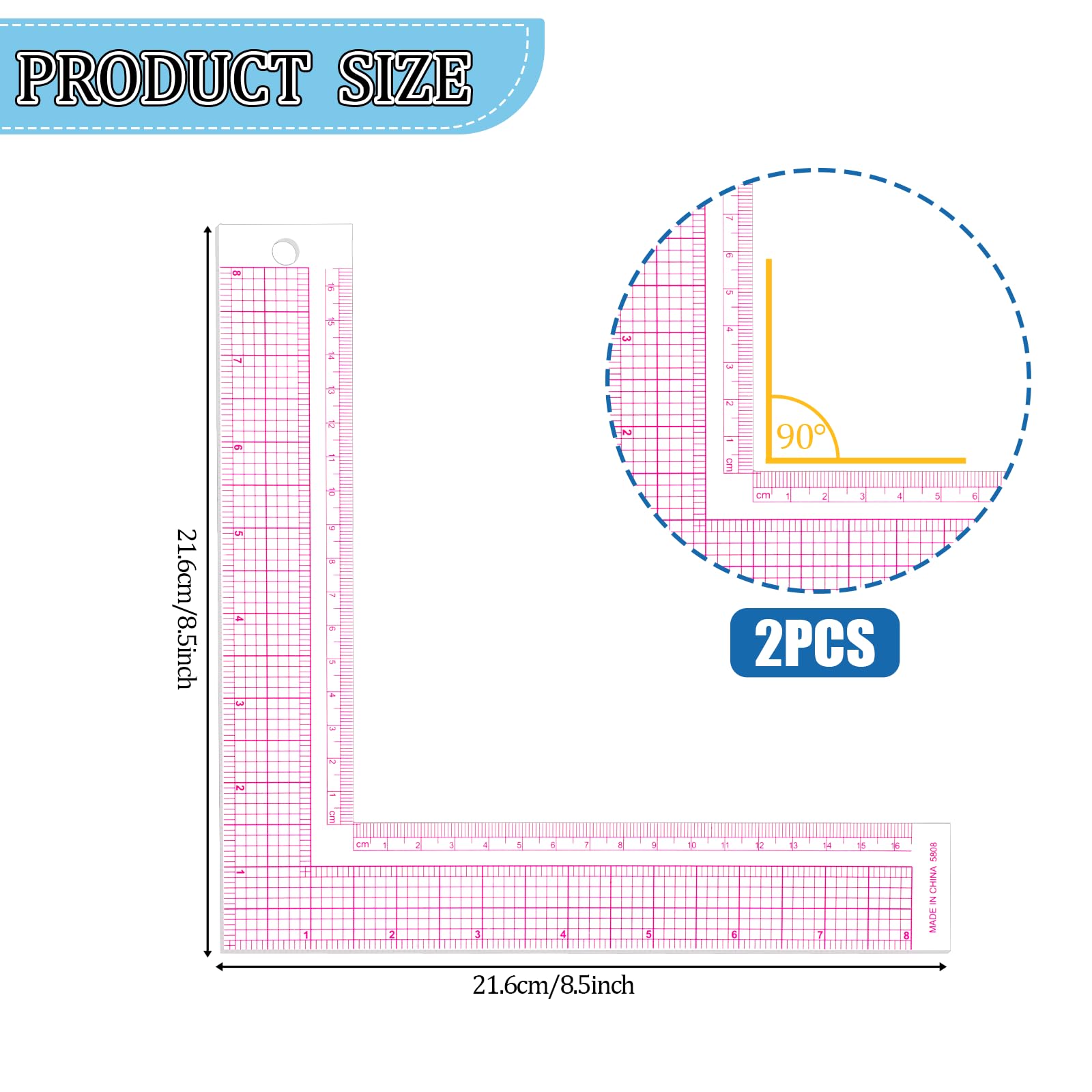 Effortless Measurement: The 8.5-inch L-square rulers feature a distinct grid pattern that simplifies the measurement process. The clearly marked scales are easy to read, enabling users of all skill levels to quickly and accurately measure fabric, patterns, and more.