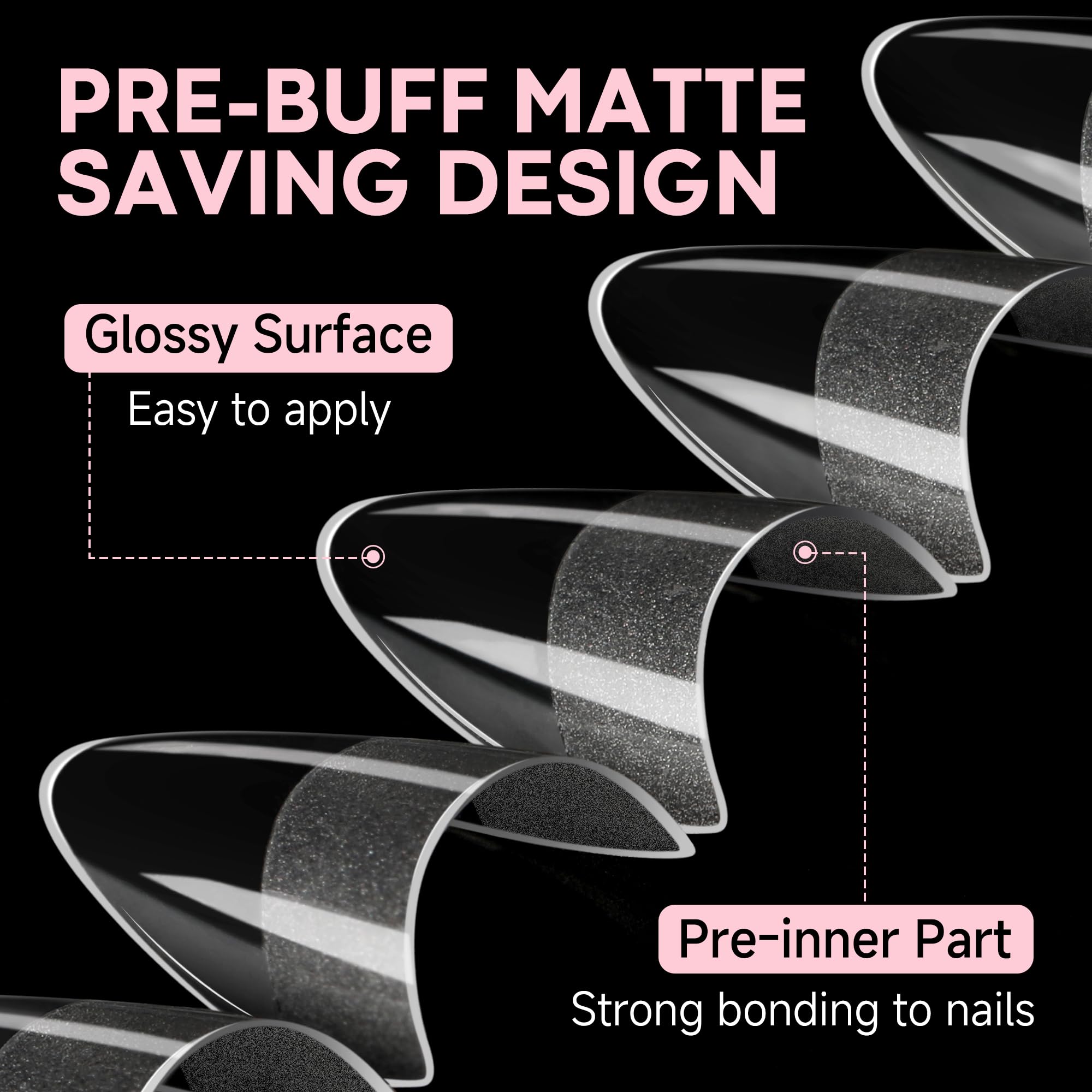 💕FLAT NO C CURVE DESIGN💕The short almond fake nails are pre-made with "thicker front, thinner back "design, thick tips are not easy to break and thin back for ultra fit. Nail bed has slight c curve fit for popular nails, the gelly tips can be shaped c or no c curve to fit flat or curved nails. UNA GELLA almond gel nail tips bring you ultimate comfort and salon-quality enjoyment.