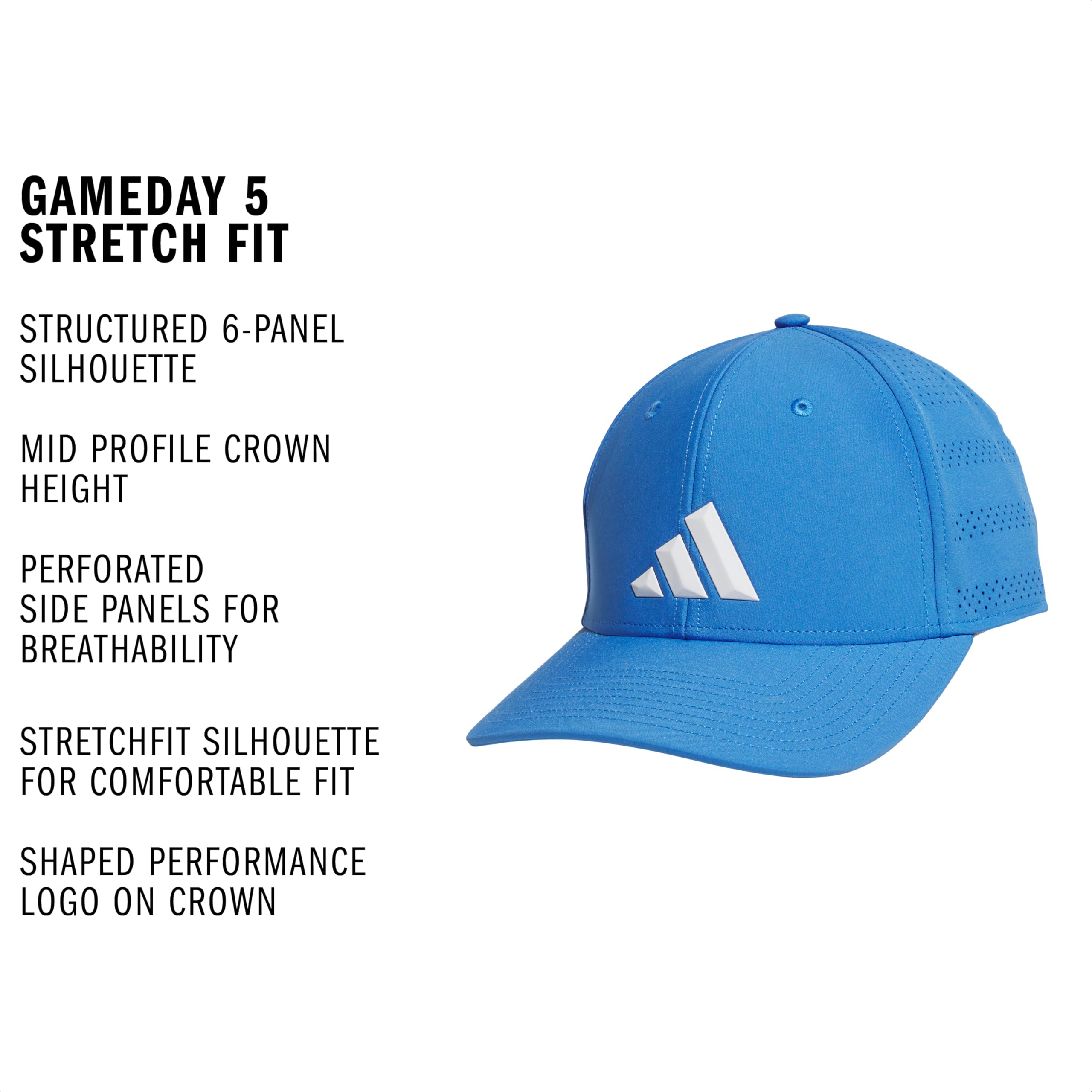 Description The adidas Men's Gameday Structured Stretch Fit Hat is the ideal choice for those seeking versatile mens hats and caps. Designed as a great hat for men, this flexible athletic sports cap offers both style and function. Made from durable poly spandex material, it withstands wear and tear while maintaining its sleek look. Ideal for various activities, whether you're searching for golf hats that men appreciate or looking for that perfect running hat men need, this cap has it all. As a great choice among men's baseball caps, the cap features a snug, stretch fit that adjusts effortlessly. The perforated 3-stripes on the sides provide breathability, making it a great pick as a men's baseball cap. With UPF 50 protection, it effectively blocks harmful UV rays, allowing you to focus on the game. This cap dries fast, keeping you cool and comfortable whether you're on the sidelines or in the heat of a practice session. Elevate your collection of men's hats with this stylish cap.