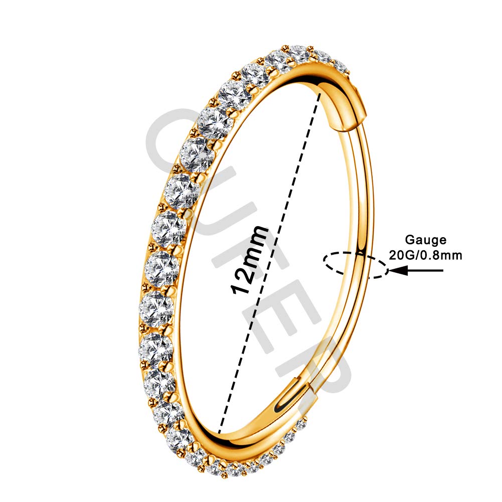 ❤SHINY STYLE❤:1PC gold plated with shiny clear CZ paved hinged segment cartilage earring hoop ,more than 11 clear CZ paved,makes it more shiny and charming on your ear or nose .