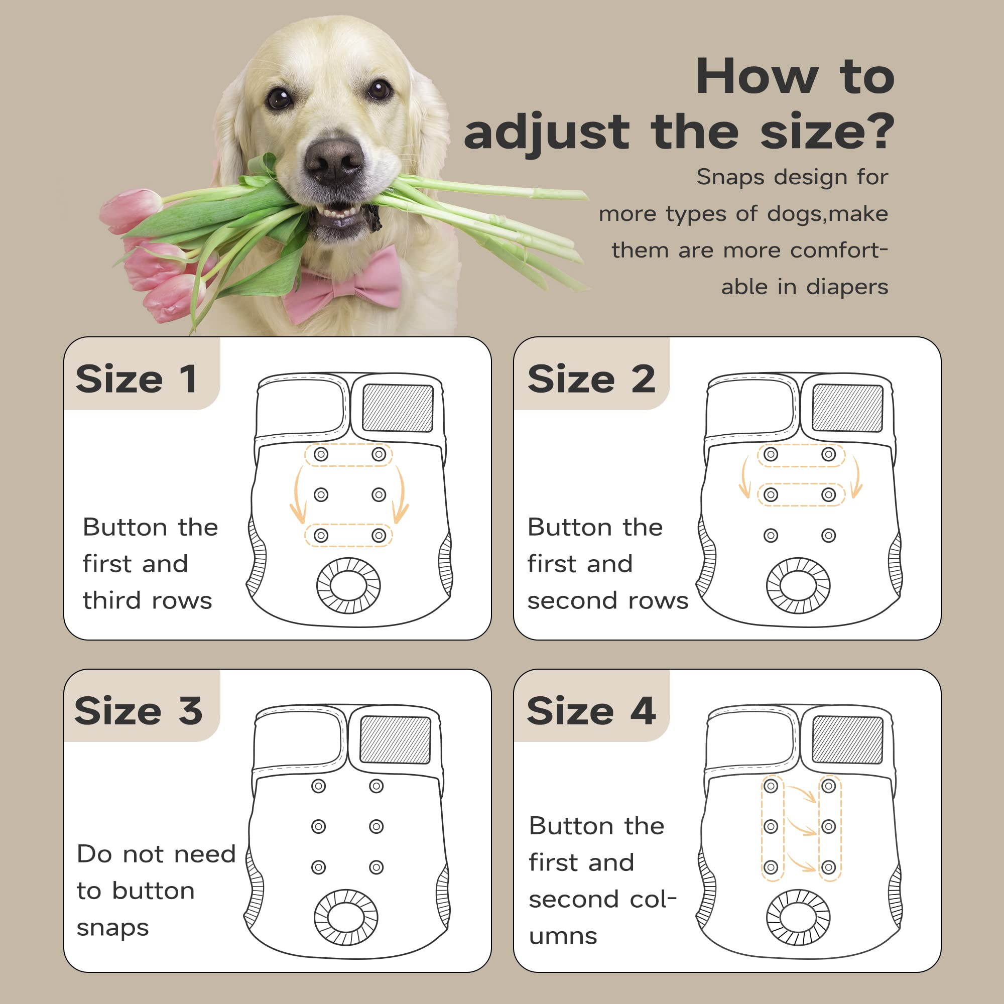 Adjustable and Secure: Back snaps for customizable sizing, strong hook-and-loop closures, and leg elastics for a snug fit and full coverage. Easy to put on and take off.