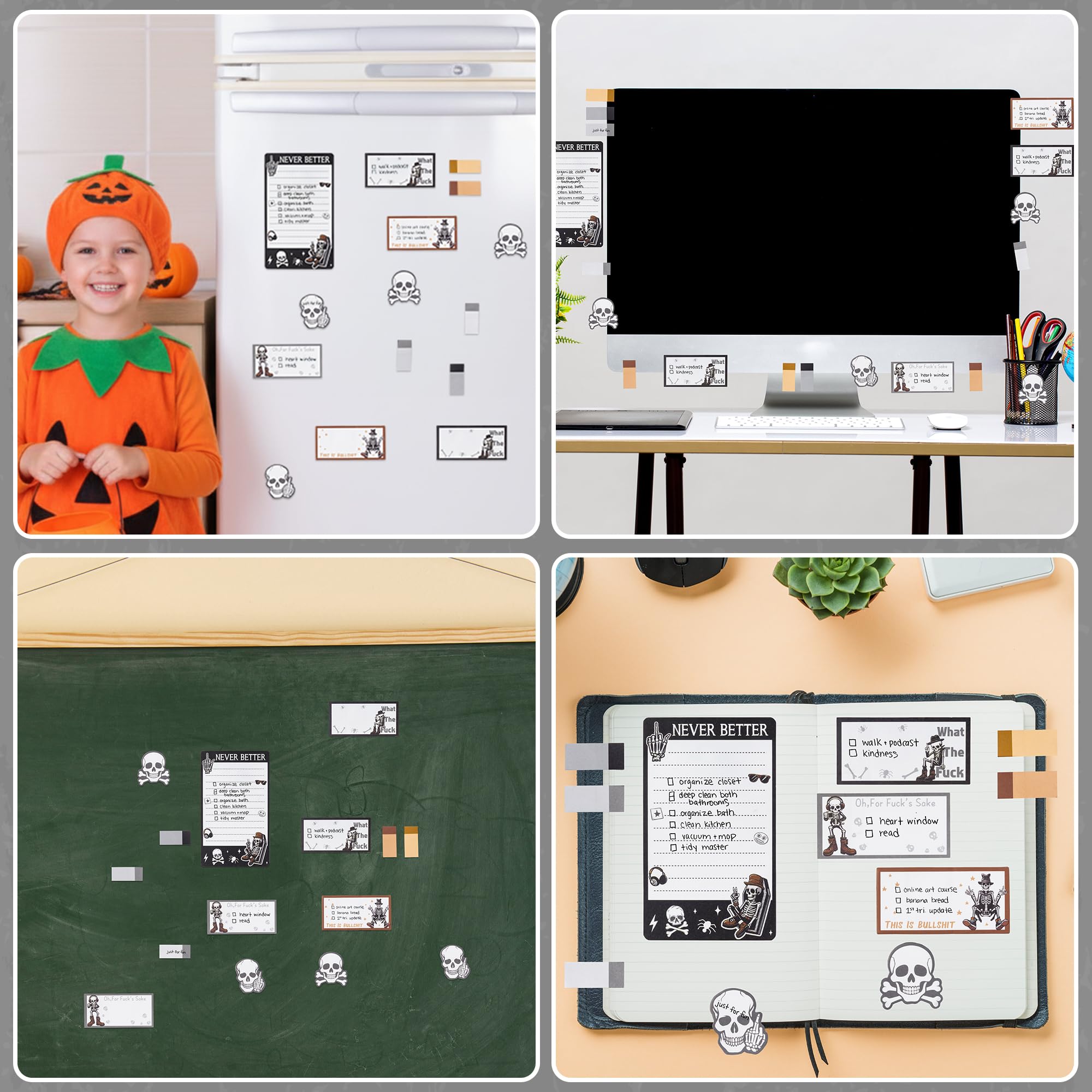 Gift: This sticky notes set is the great gift for yourself, friends, classmates, students, school office supplies. And it is perfect for Christmas, Halloween, Day of the Dead, birthday, New Year's party and black theme party as funny gifts.