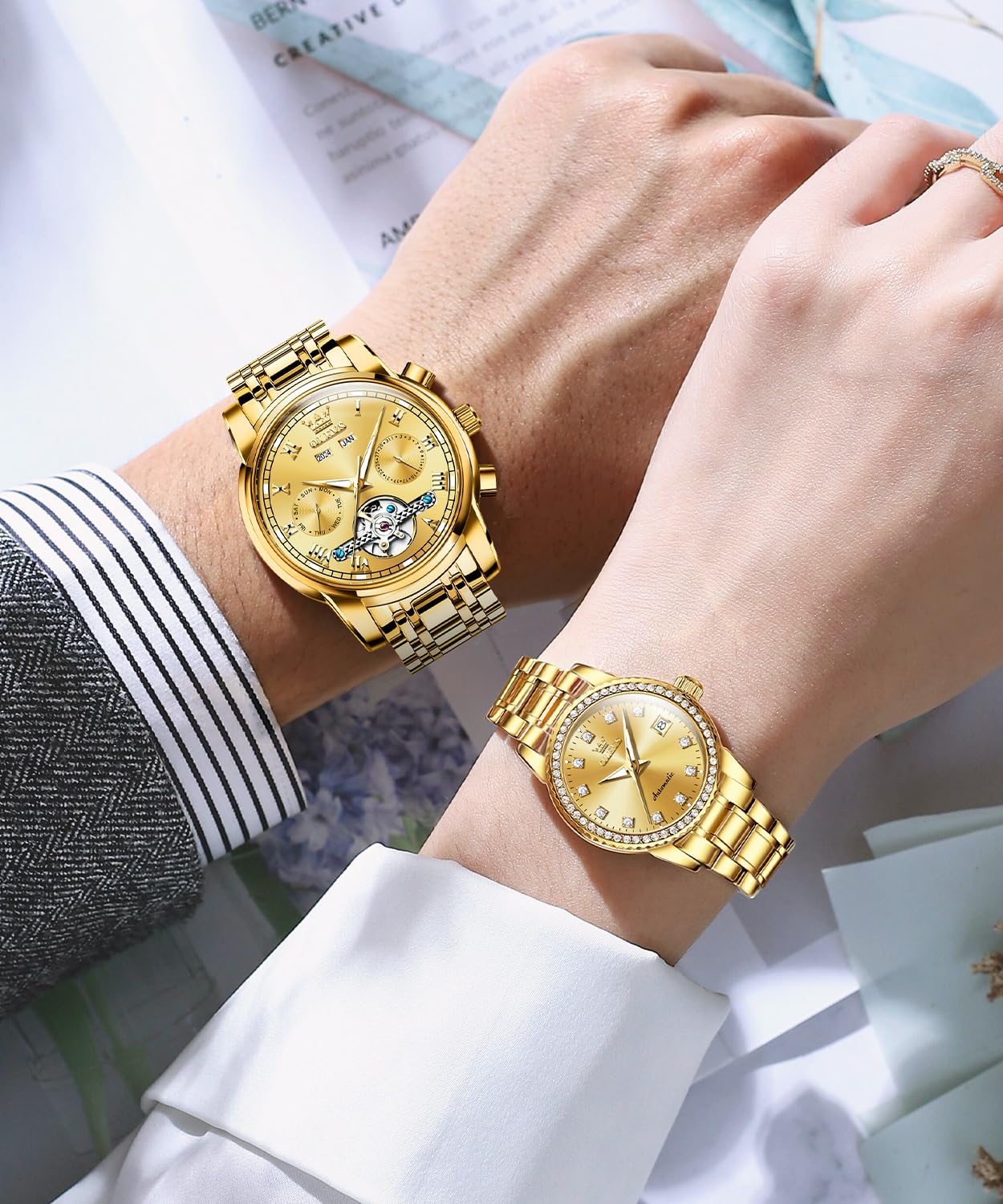 💕Watch Specifications💕: 12mm thick couple watch. Mens automatic watch (diameter 41mm, strap width 20mm, length 22cm); Women mechanical watch (diameter 29mm, strap width 14mm, length 18cm, suitable for most couples' wrists).