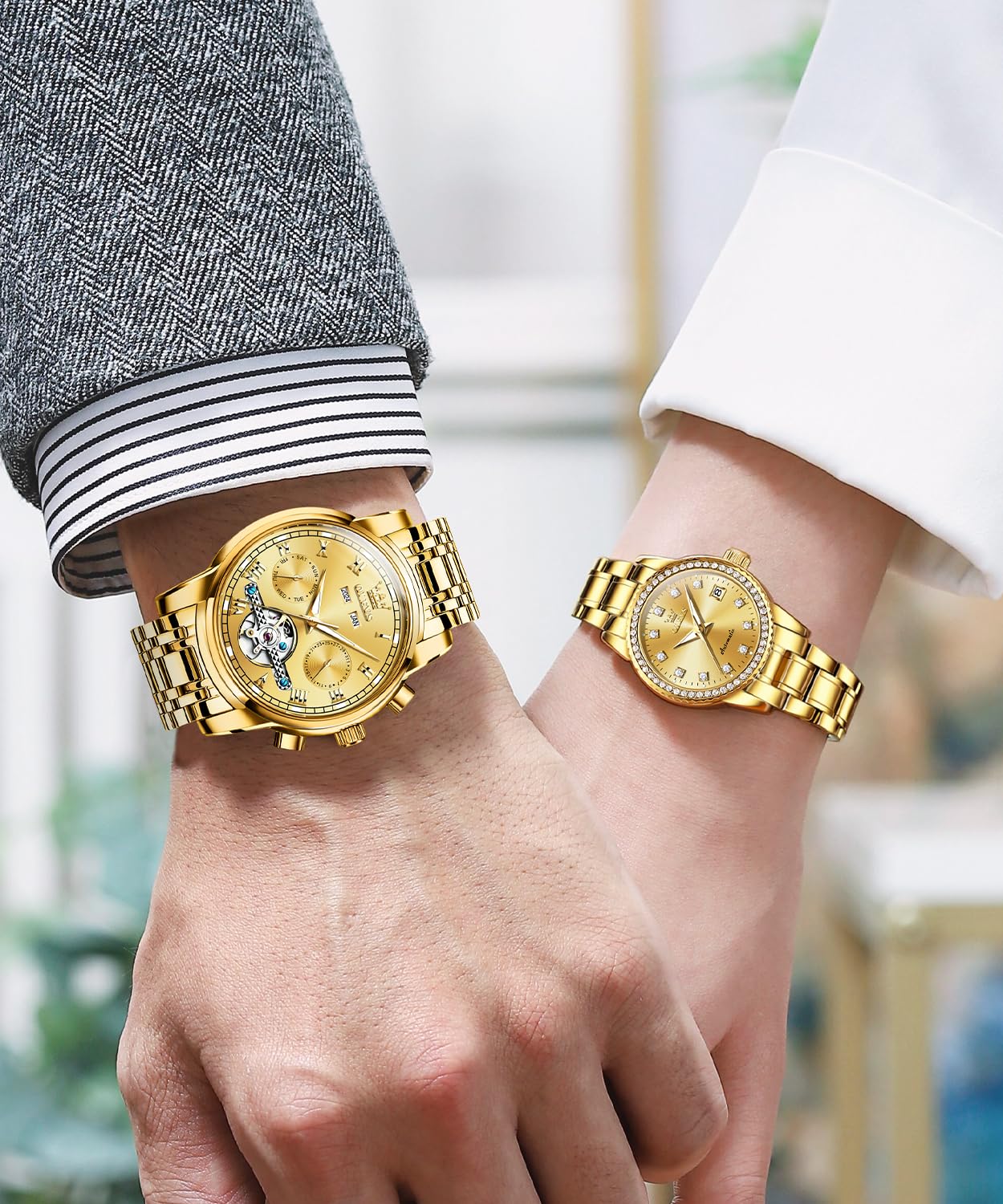 💕His and Hers Watch Set💕: Original automatic self winding mechanical movement, accurate travel time. This stainless steel watch comes with adjustment tools and instructions, and the strap can be freely adjusted for strap length.