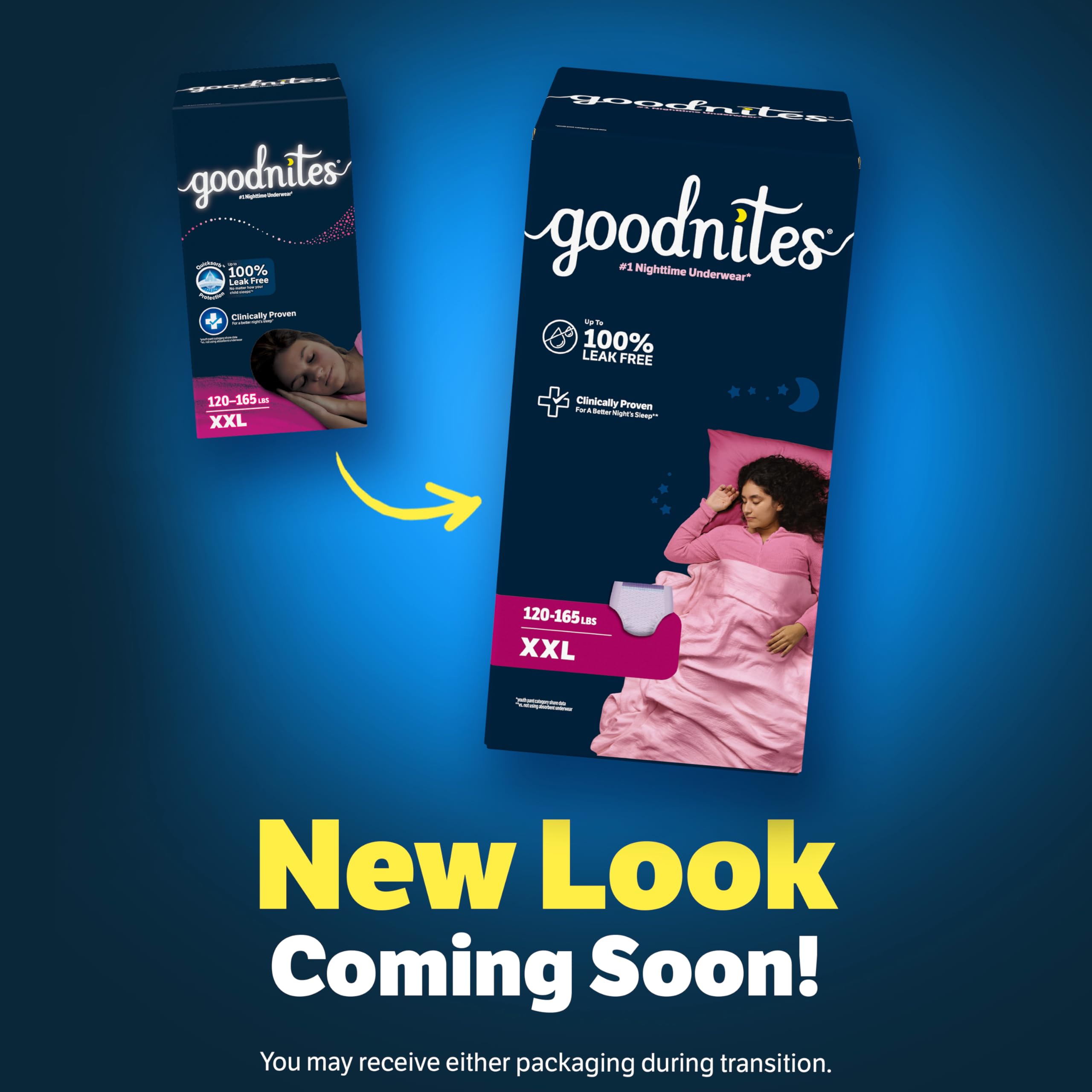 Goodnites Girls' Nighttime Bedwetting Underwear: 42 (2 packs of 21) overnight underwear for girls, size XXL; fits children 120-165 lbs, packaging may vary