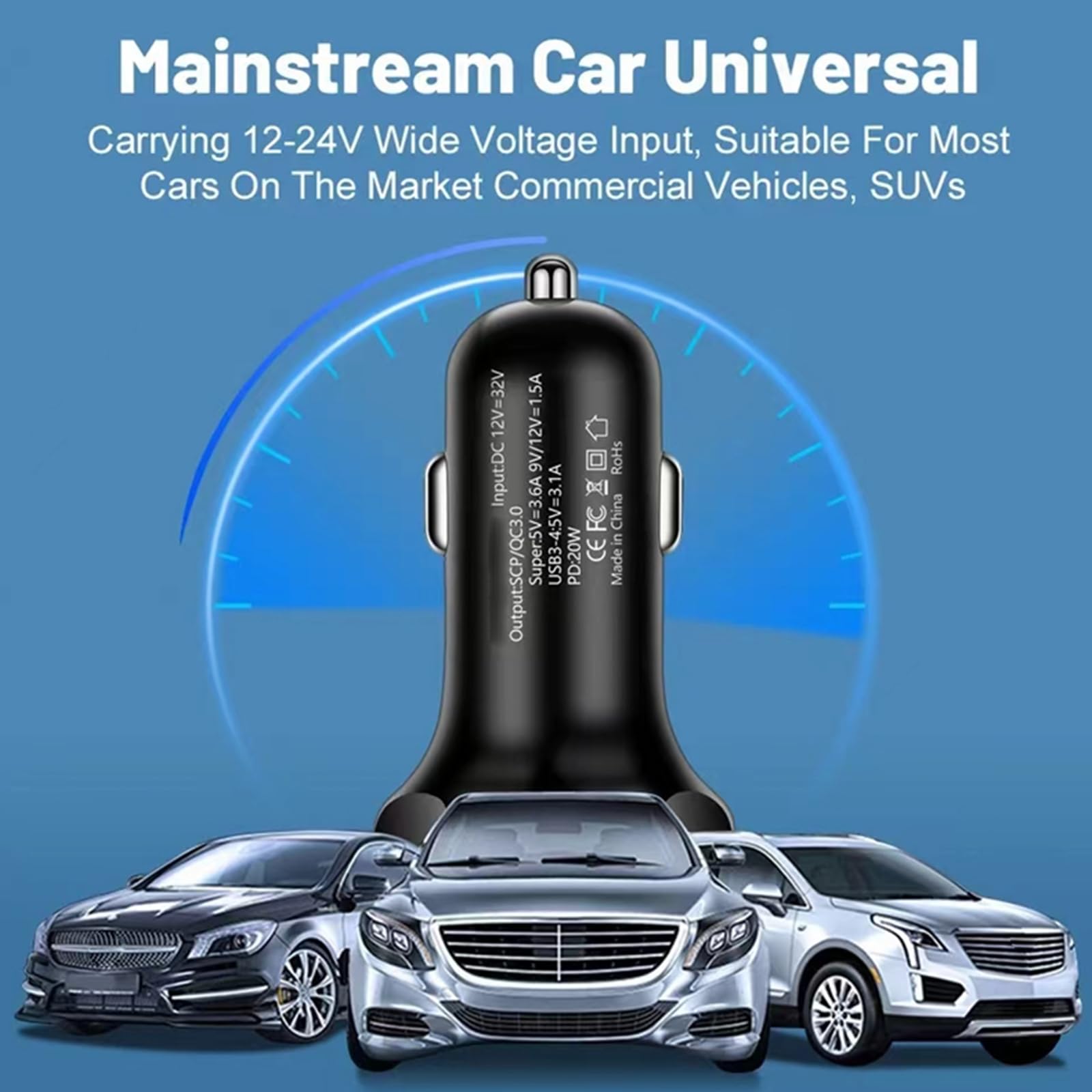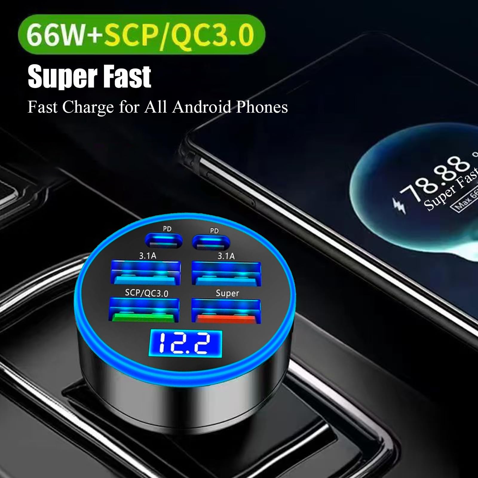 [6 in 1 Charging] This powerful 6 in 1 multi ports usb c car charger adapter allows charging 6 phones at the same time, this design of multi port helps you save time when you want to charge some more phones, and also save then number of 12V cigarette lighter socket because you needn't additional cigarette lighter ports if you want to extend some more charging ports
